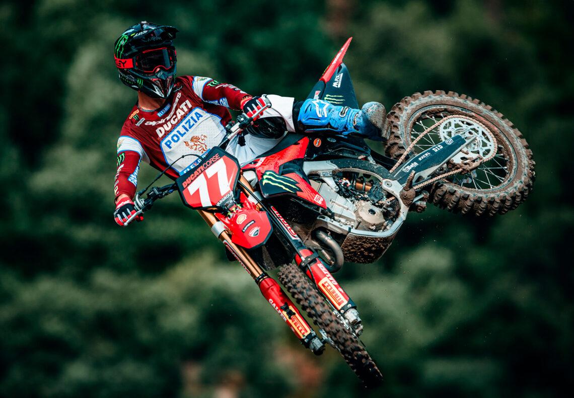 En la última prueba del curso, disputada en Pietramurata, Lupino certificó el título, el primero de Ducati en MX en su temporada de debut. La Desmo450 MX también se ha dejado ver en dos ocasiones este año en el Mundial de MXGP: primero en Países Bajos, con un prometedor estreno con Cairoli a los mandos, y después en Cózar, donde Lupino fue 12º en la primera manga antes de tener que retirarse en la segunda.