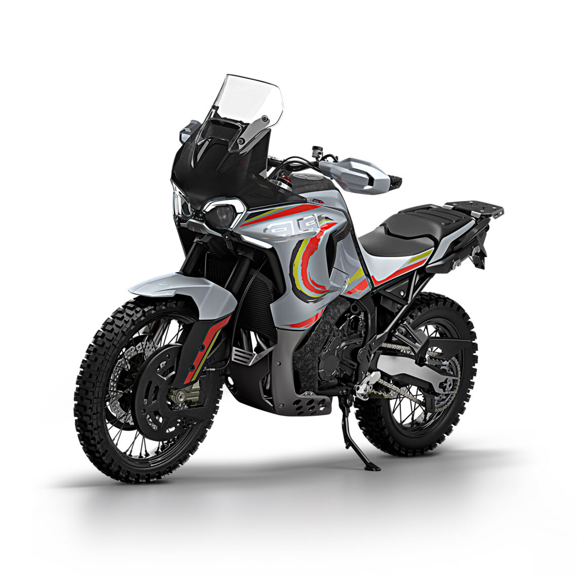 Por un lado, tenemos la MV Agusta Lucky Explorer 5.5, una moto A2 de media cilindrada (bicilíndrico en línea de 550 cc) de tipo trail, con rueda delantera de 19" y llantas de radios y, por lo que se puede apreciar, con componentes muy pero que muy aventureros que vendrán perfectamente acompañados de una dotación electrónica muy interesante. Hay que mencionar que se trata de una de las primeras colaboraciones con su socio chino QJ, por lo que hay mucha expectación no sólo por el nuevo segmento sino por la búsqueda de un tipo de público mucho más amplio y accesible.