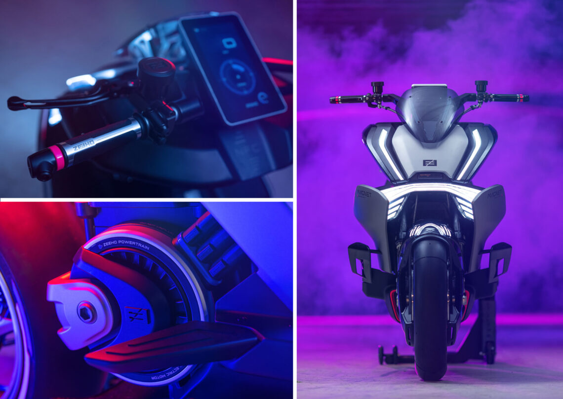 Zeeho es la marca eléctrica de CFMoto, y por lo que hemos visto hasta ahora destaca por su alta calidad, gran atractivo y sofisticada estética y tecnología de última generación. En el EICMA hemos podido ver su prototipo Magnet Concept, y de él llaman la atención muchas cosas. Primero, la columna central en la que vemos a través de un cristal el paquete de baterías de litio intercambiables. Y esos neumático nos advierten de altas prestaciones: velocidades máximas por encima de los 150 km/h y aceleraciones de 0 a 50 km/h en 2,5 segundos. Mientras que la autonomía alcanza los 200 km. Cuenta también con dispositivos como las cámaras frontal y trasera que ayudarían a ciertas asistencias a la conducción además del habitual ABS y control de tracción. Zeeho de momento no llega a España pero no sería raro verla pronto por aquí de la mano de su matriz CFMoto.