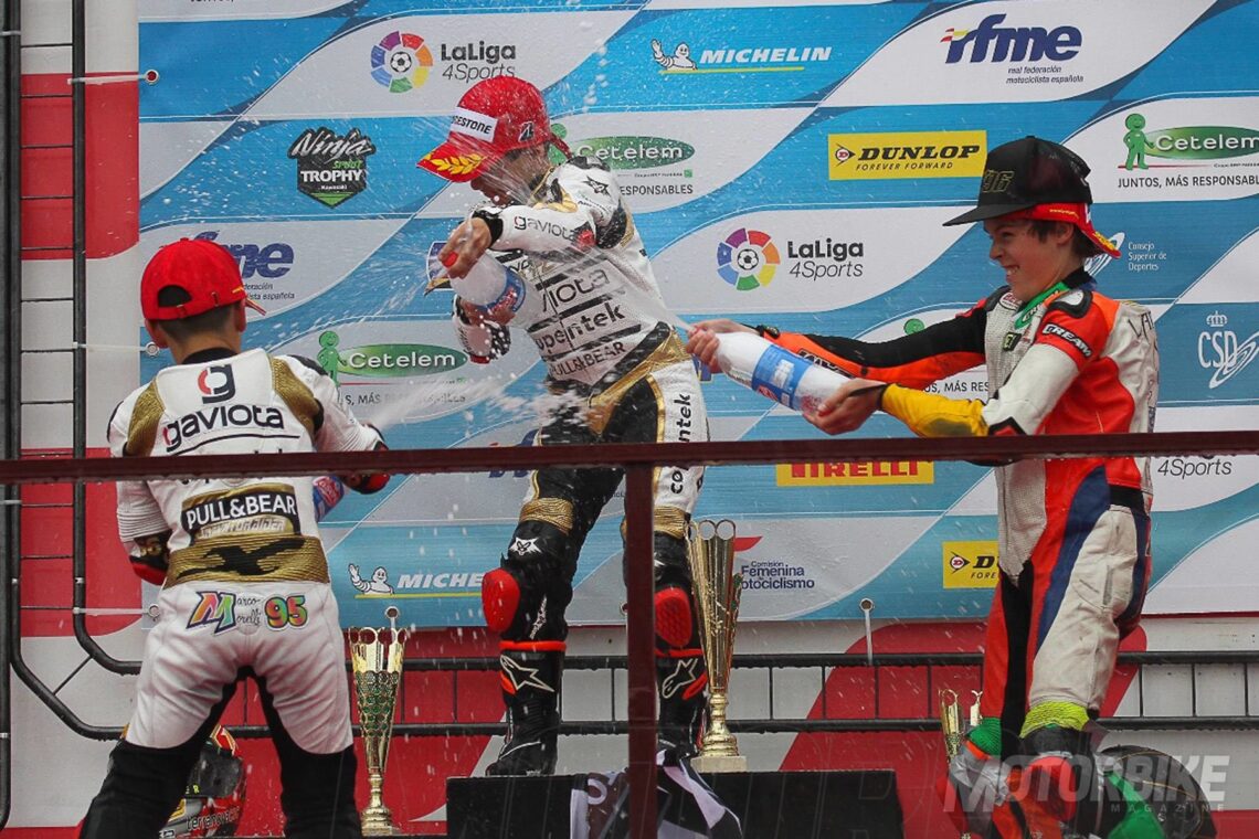 La carrera de Supersport300 ha tenido una bonita lucha durante toda la carrera entre Ferrán Hernández, Ali Rusmiputro, Yeray Ruiz, Unai Orradre y Beatriz Neila. La carrera no se ha decidido hasta la última curva, con Ferrán logrando la victoria y dejándo a Unai y Bea segundo y tercera. La siguiente carrera fue la de Stock600, con una lucha cerrada entre Borja Quero y Javier Orellana hasta que Borja se fue al suelo. Acompañando a Quero en el podio han subido su compañero Lukas Tulovic y David Sanchís, que tuvieron que pelear toda la carrera con Ivo Lopes y Dani Sáez. En Open600 Julio Palao, Francisco Javier Hidalgo y Andoitz Bonilla han ocupado los tres primeros puestos.