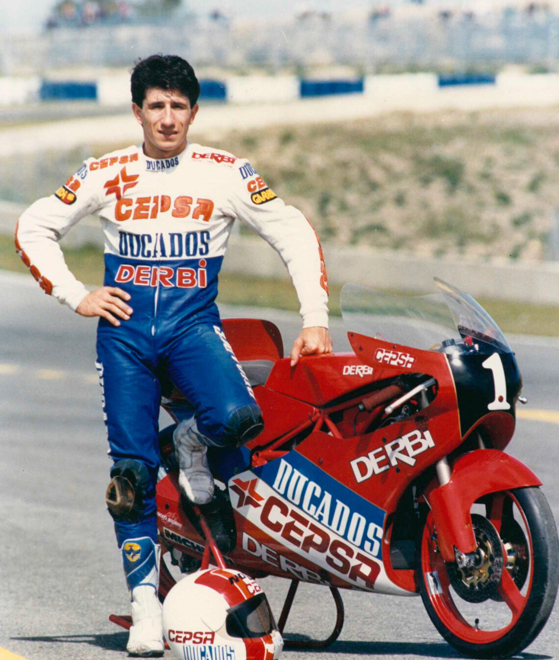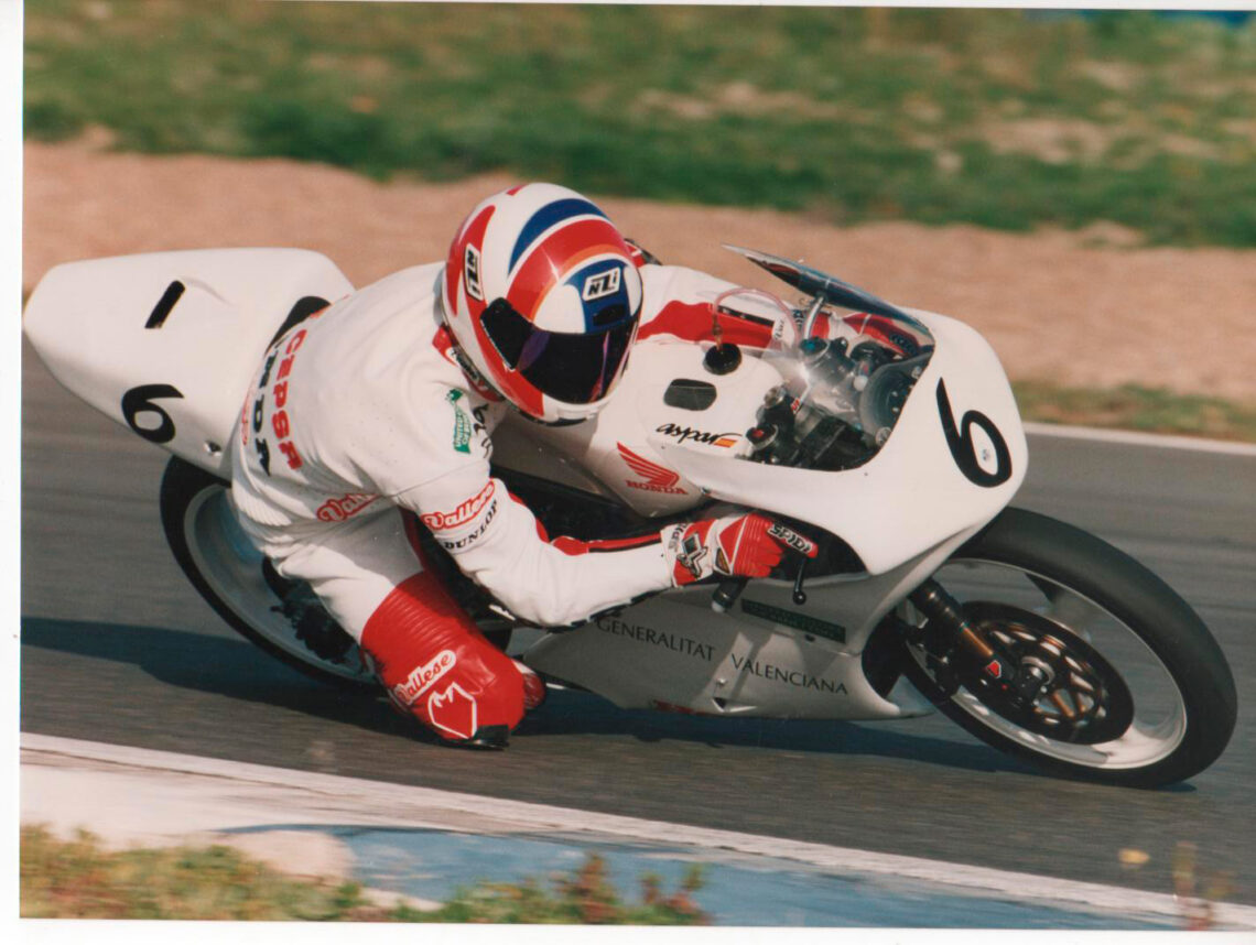 Entonces yo me cogía la bicicleta y me escapaba ver las carreras. Luego, afortunadamente en Alcira estaban los hermanos Calafat, mi hermano Vicente, que también corría, Adrián Campos, que creó una escudería de motos de las mejores de España... Entonces, ya me involucre en esa en esa escudería con 13-14 años y me llevaban de "machaca", a limpiar las motos. Y nada más pude, me puse a correr en moto, pero toda mi vida está alrededor de las motos.