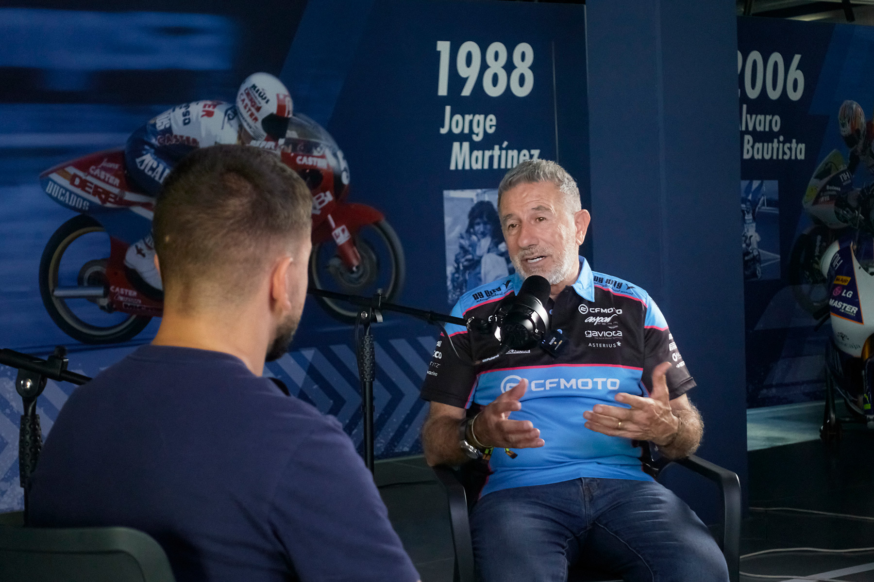 Desde el museo del nuevo Aspar Circuit (inaugurado el pasado 21 de mayo), Jorge Martínez "Aspar" atiende a MOTORBIKE MAGAZINE para repasar una trayectoria que como piloto le coronó cuatro veces Campeón del Mundo (tres de 80cc y una de 125cc), antes de fundar su propio equipo y ganar aún más títulos mundiales y de poner una nueva piedra para formar a futuros talentos del mundo del motociclismo.