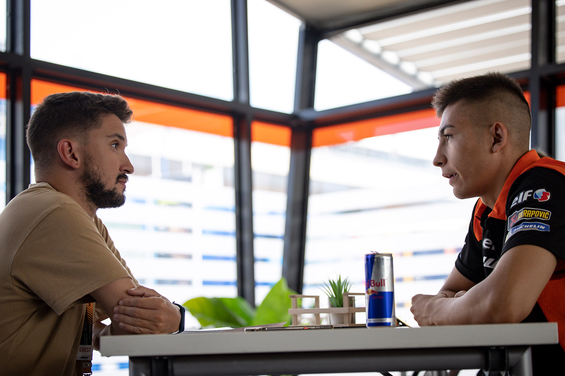 R: «Bueno, realmente influye lo que tú confíes en tu entorno. Para mí esto no ha supuesto ningún problema y lo digo muy abiertamente, porque me siento muy privilegiado con el entorno que tengo, de trabajar con gente como Jordi y Nani (Roma). Son dos personas que están detrás de este proyecto, aunque hay muchísimas más por detrás. A mí me da mucha seguridad, confío plenamente en ellos, sabía que me iban a dejar las mejores opciones y que iban a luchar por mí al 200%, y esto me hacía estar tranquilo. Al final, no se me ha ido ni un segundo de mi concentración en pensar qué pasará el año que viene. Simplemente, y a día de hoy lo sigo diciendo, sigo centrado en mi año, en seguir evolucionando y trabajando, y en tratar de mejorar. Ese es mi objetivo ahora, no el de pensar en el año que viene. Si vas así, te pasas siempre tu carrera deportiva pensando en el año siguiente y no avanzas ni como persona ni como piloto».