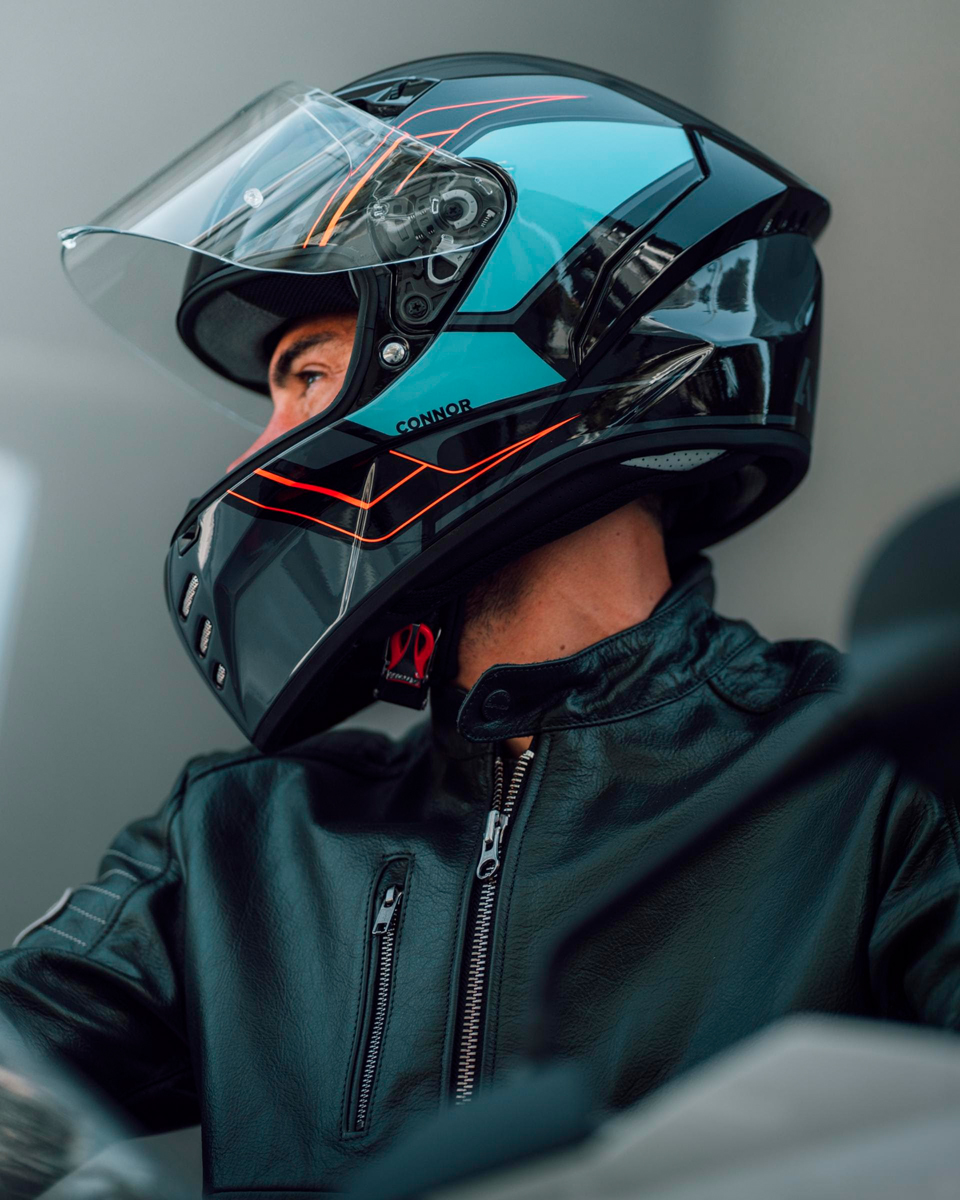 En cuanto a su visera, tiene características innovadoras que aseguran una gran visión, siendo antivaho y disponible con la lente Pinlock 70. Elementos esenciales para minimizar el riesgo de empañamiento. También dispone del ATVR, un sistema que permite la liberación rápida de la visera.