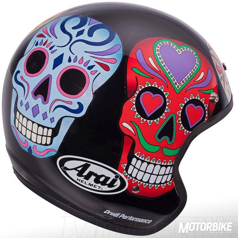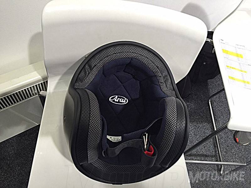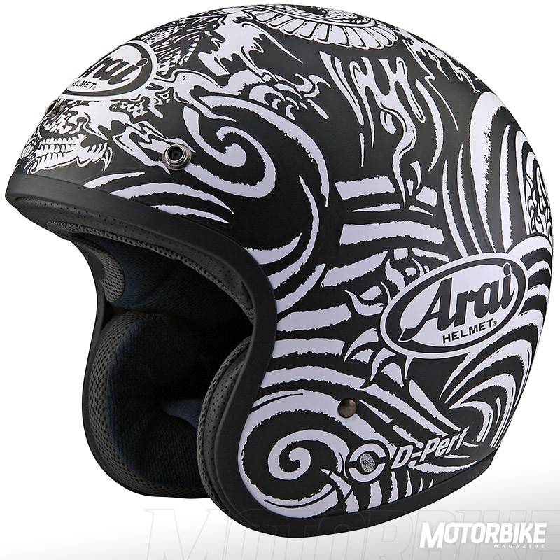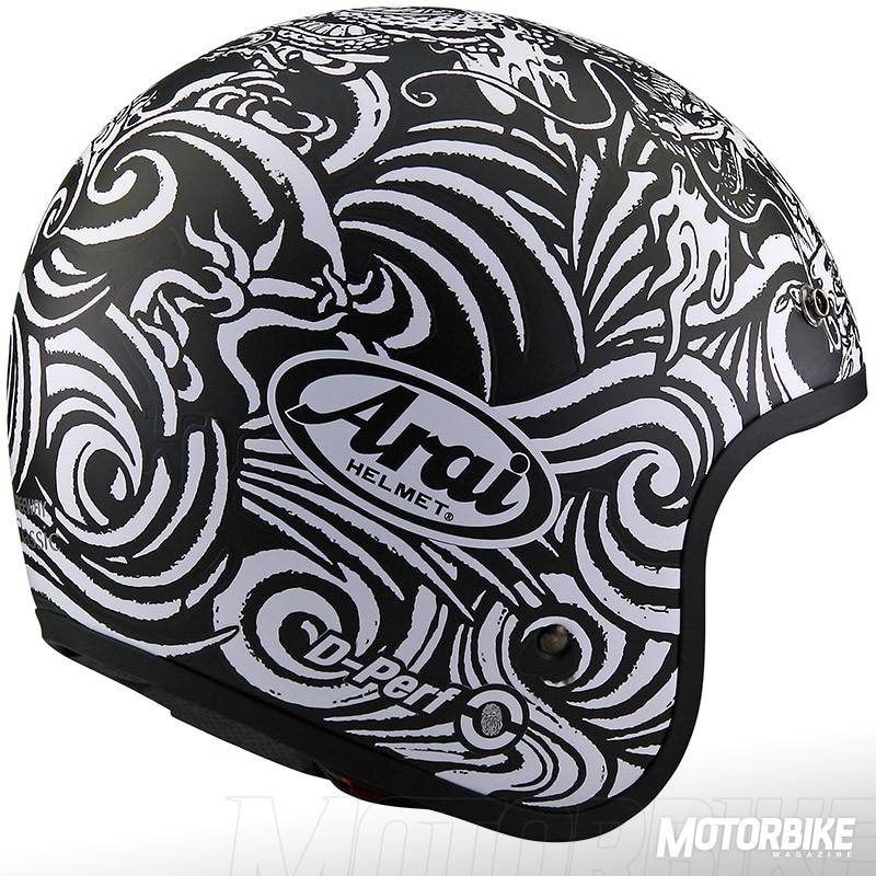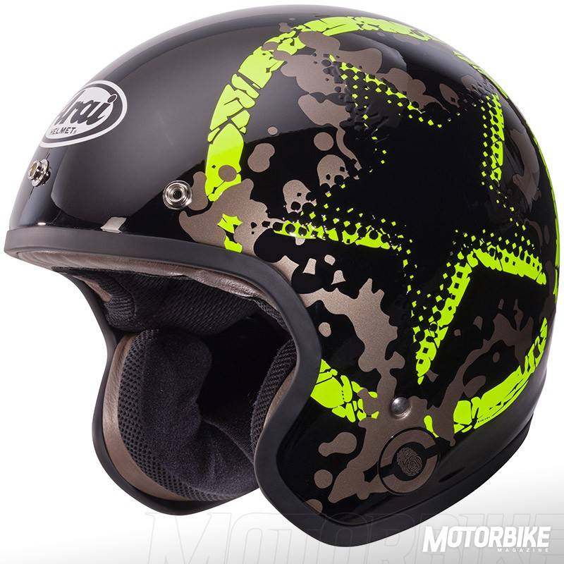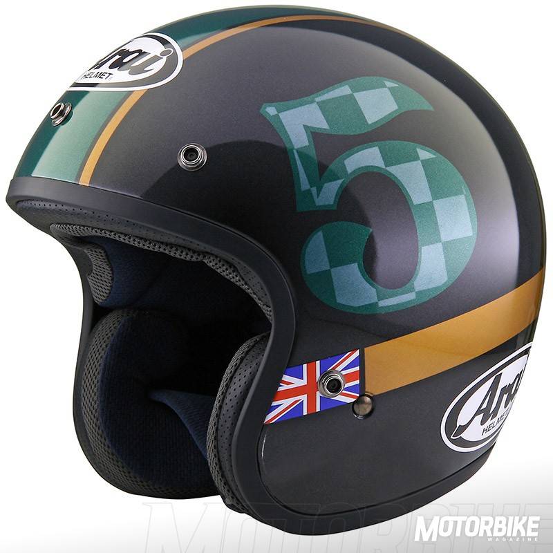 El modelo Freeway Classic de Arai está fabricado en súper fibra laminada, y viene con cinco botones a presión en el área frontal. Los tres superiores sirven para sujetar una visera (que viene incluida con el casco) y en conjunto para añadir una visera tipo “bubble”. Cuenta también con una banda posterior para sujetar la cinta de unas gafas (no incluidas). Sus acabados interiores son en piel sintética, suave y flexible y sus acolchados laterales son extraíbles, y vienen con dos láminas de espuma de distinto grosor que son regulables hasta 5mm para adaptar el casco perfectamente a la cara del usuario. En la zona de las orejas, trae un amplio espacio que facilita el uso de intercomunicadores y su cierre es de tipo de doble anilla. Las tallas disponibles van de la XS a la XXL.