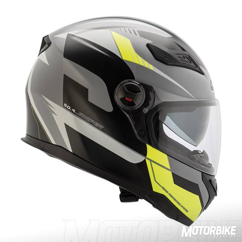 La calota del GIVI 50.4 SNIPER está fabricada en tecnopolímero, un tipo de plástico muy moldeable y altamente resistente a las altas temperaturas y a todo tipo de impactos. Su interior es totalmente extraíble, lavable y por supuesto, antialérgico. Cuenta con un cierre de tipo micrométrico y con un cubrenariz extraíble y un cómodo cubrebarbilla que hace aún más hermético el casco. En cuanto al sistema de ventilación, lleva dos tomas de aire en la parte superior y otra más en la mentonera, con una extractora posterior. La pantalla está preparada para PinLock (no incluido), y lleva tratamiento antirralladuras. Además cuenta con una visera interior ahumada para los días de más sol. Su peso es de 1.450 gramos y está disponible en tallas de la XS a la XL.