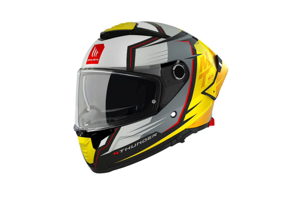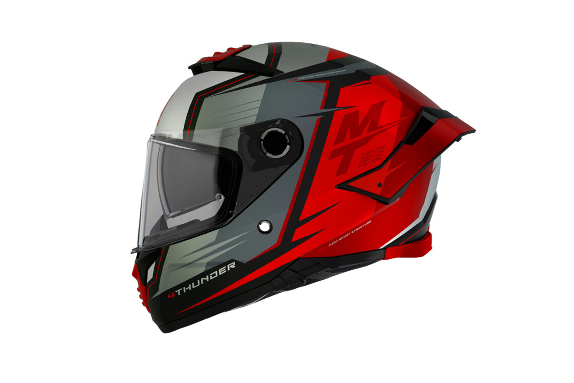 El MT Thunder 4 SV es un casco sport-turismo que quiere convertirse en un hito dentro de su segmento. La firma española lo ha diseñado incorporando en él un gran número de novedades y sistemas para que con su calidad, y su ajustadísimo precio, pueda hacer frente de tú a tú a modelos de muchos más euros.