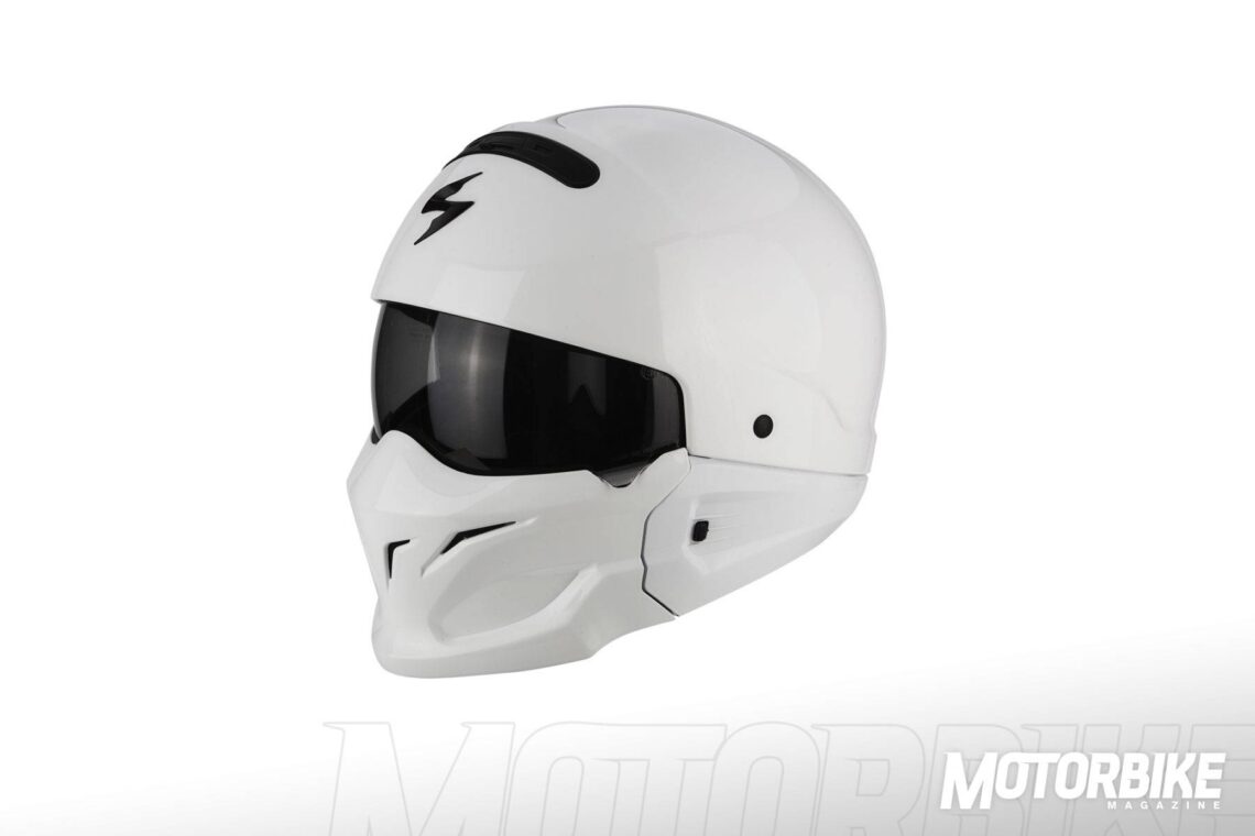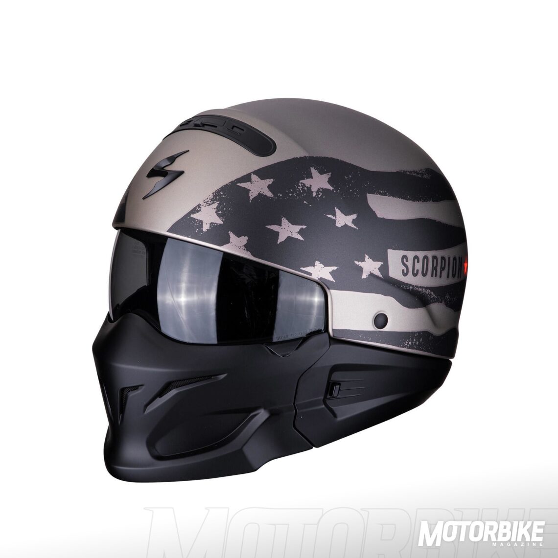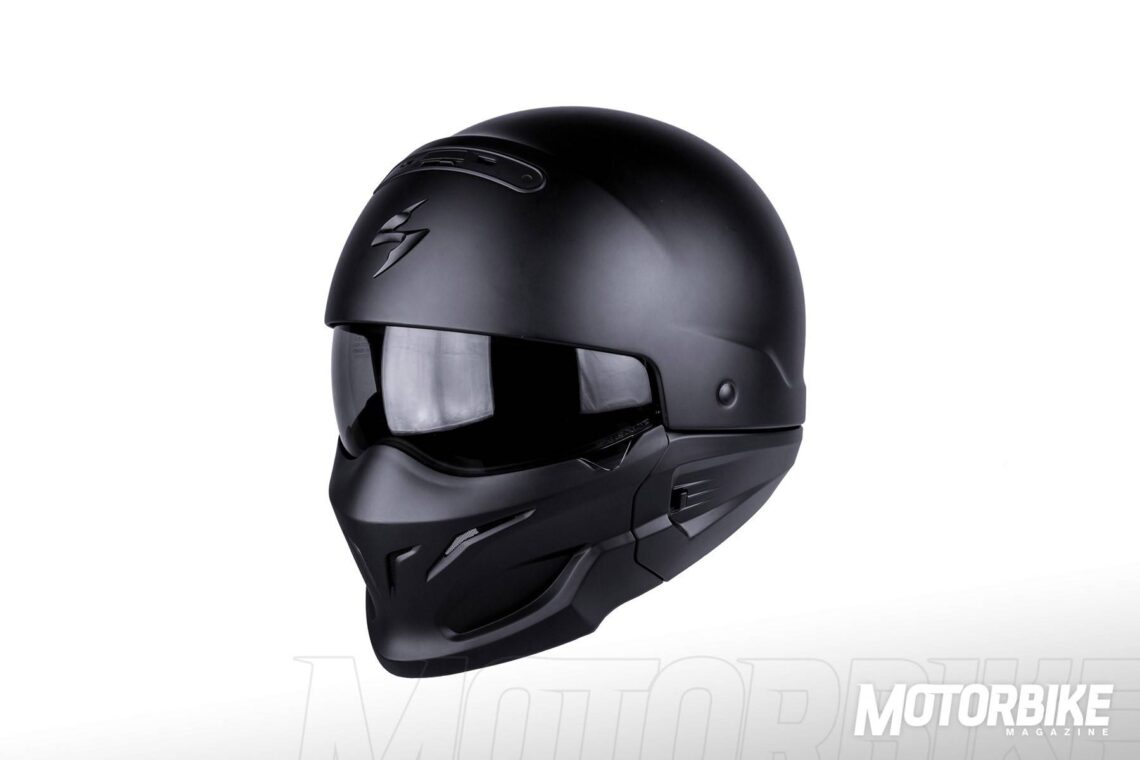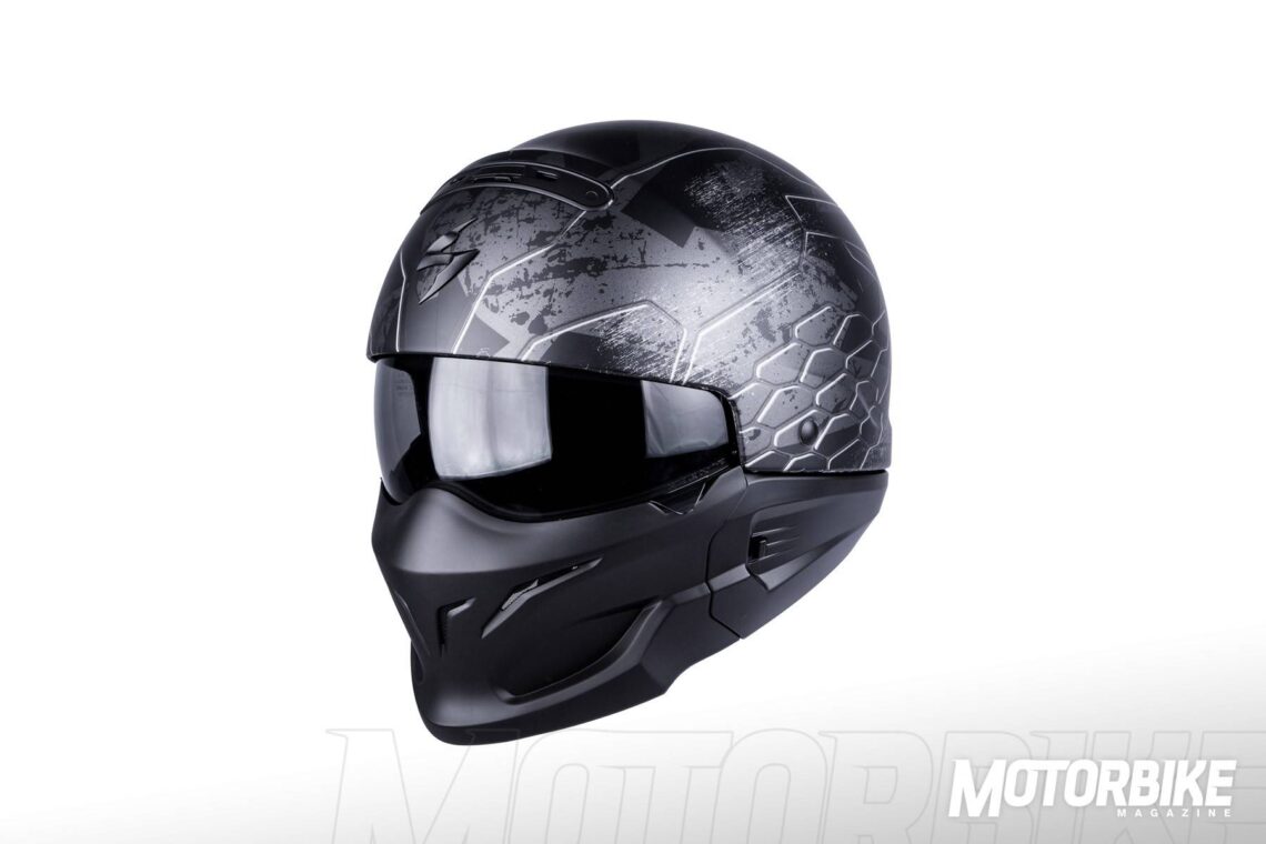 El Scorpion EXO-Combat es uno de los modelos más espectaculares del mercado. Su agresivo diseño, con una mentonera rígida desmontable y su pantalla que se recoge por dentro de la calota dejan muy claro que se trata de un casco para no pasar desapercibido. Está fabricado en policarbonato de nueva generación y para su interior se usa el tejido Kwikwick2, transpirable, absorbente e hipoalergénico, además de ser completamente desmontable y lavable. Para la ventilación, tiene tomas frontales ajustables, y mejoradas aerodinámicamente para reducir el levantamiento y maximizando el flujo de aire en el interior del casco. La mentonera es rígida y desmontable de manera muy fácil. La pantalla, que se esconde dentro de la calota cuando la subes, es fácilmente sustituible, viniendo de serie una ahumada clara y otra oscura. El cierre es de tipo micrométrico y las tallas disponibles van de la XS a la XXL.