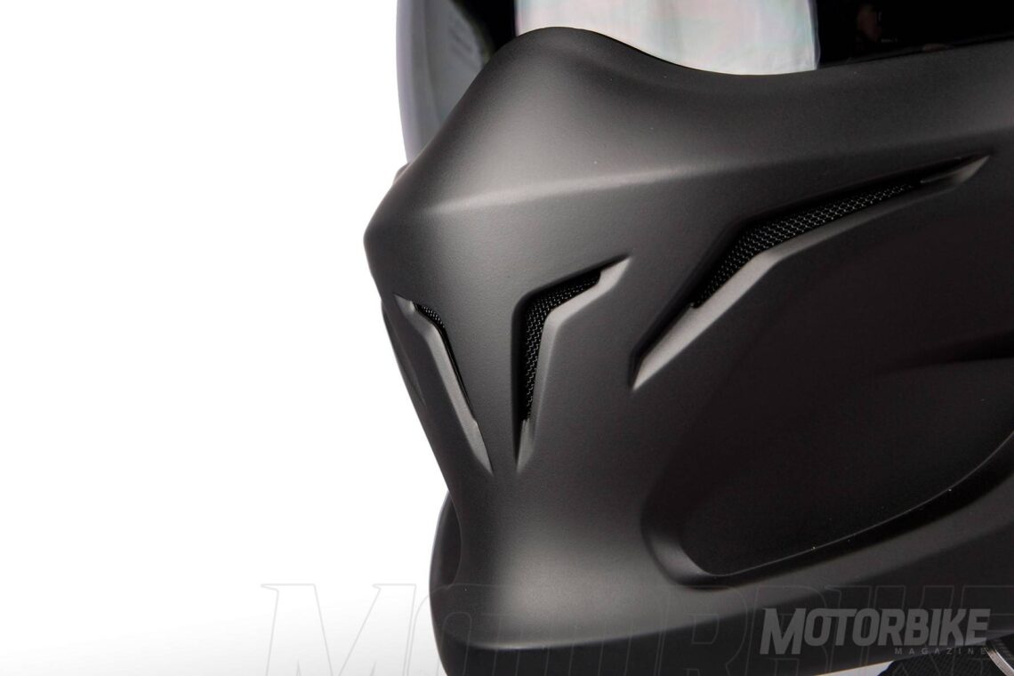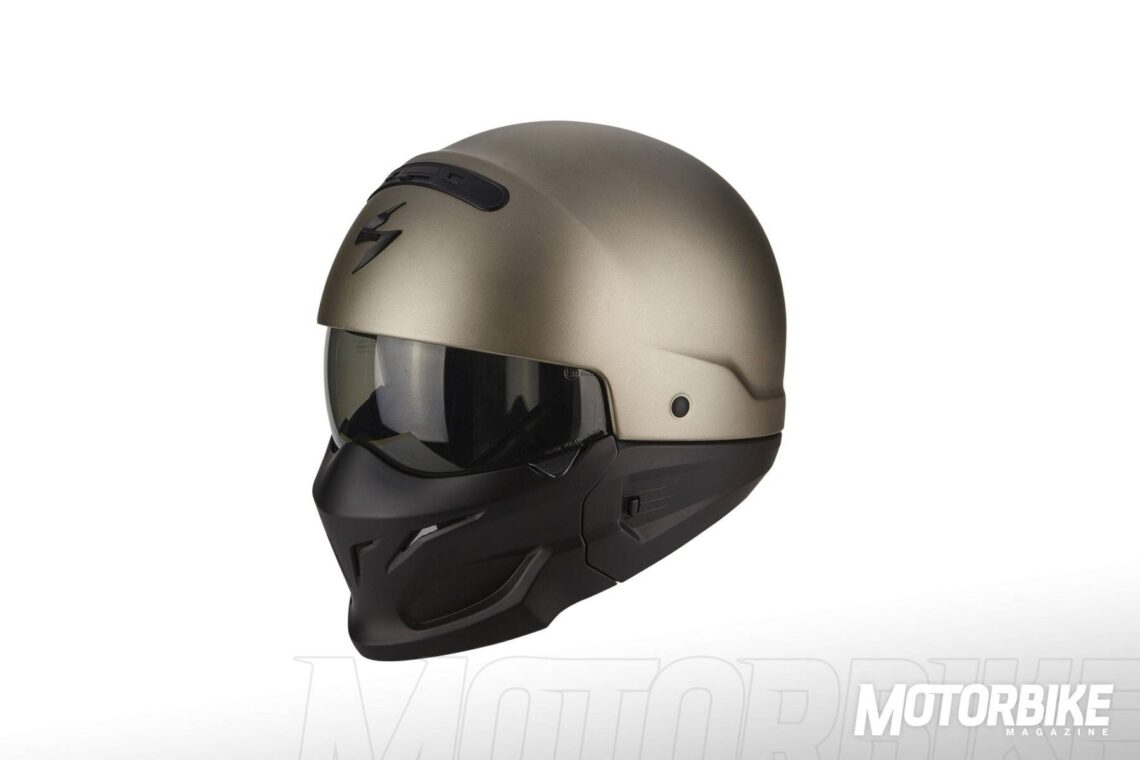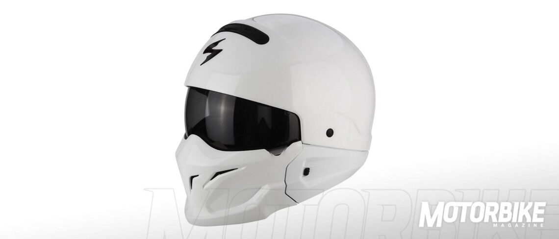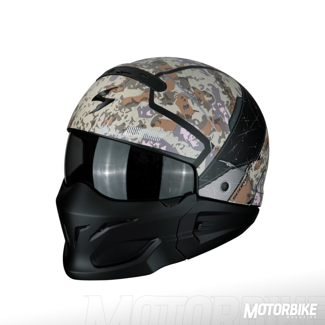 El Scorpion EXO-Combat es uno de los modelos más espectaculares del mercado. Su agresivo diseño, con una mentonera rígida desmontable y su pantalla que se recoge por dentro de la calota dejan muy claro que se trata de un casco para no pasar desapercibido. Está fabricado en policarbonato de nueva generación y para su interior se usa el tejido Kwikwick2, transpirable, absorbente e hipoalergénico, además de ser completamente desmontable y lavable. Para la ventilación, tiene tomas frontales ajustables, y mejoradas aerodinámicamente para reducir el levantamiento y maximizando el flujo de aire en el interior del casco. La mentonera es rígida y desmontable de manera muy fácil. La pantalla, que se esconde dentro de la calota cuando la subes, es fácilmente sustituible, viniendo de serie una ahumada clara y otra oscura. El cierre es de tipo micrométrico y las tallas disponibles van de la XS a la XXL.