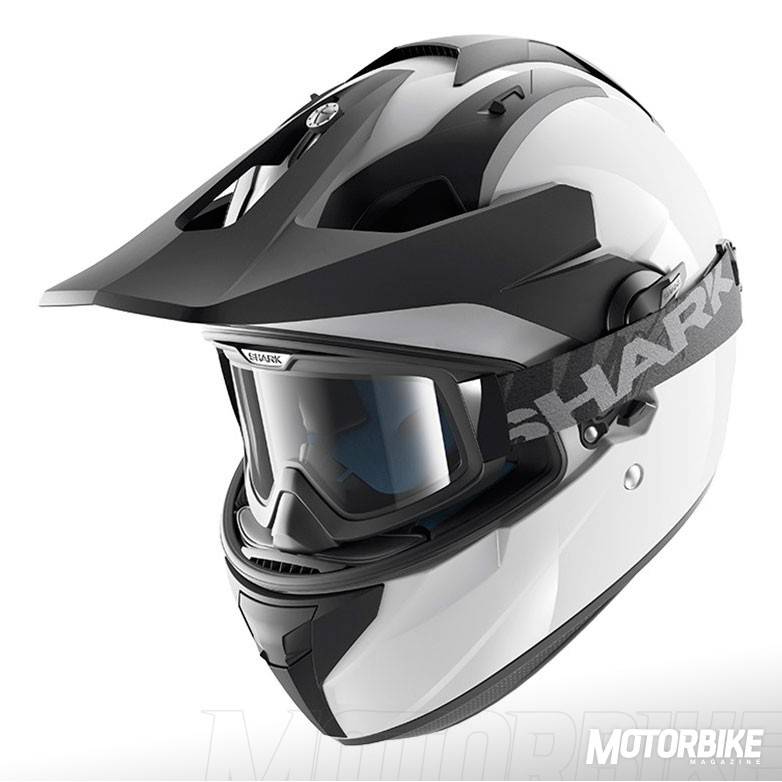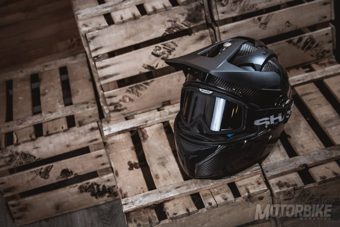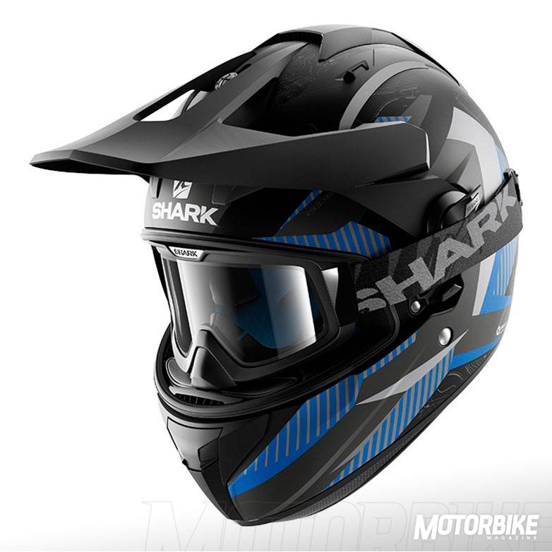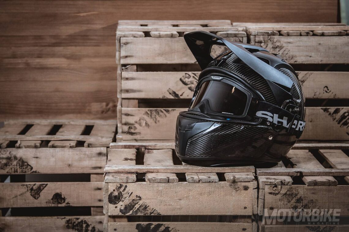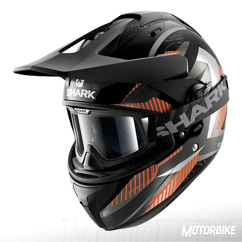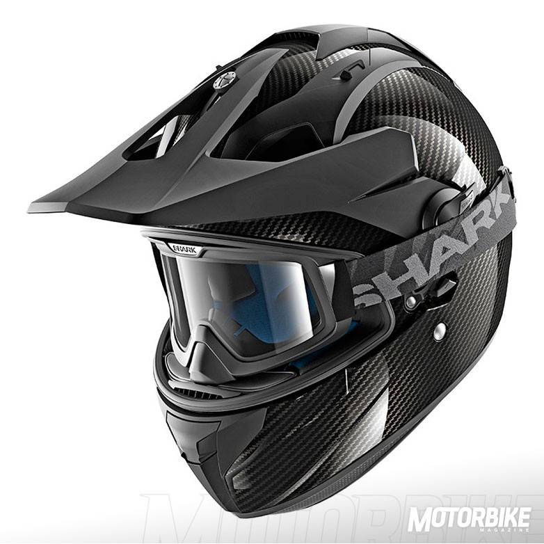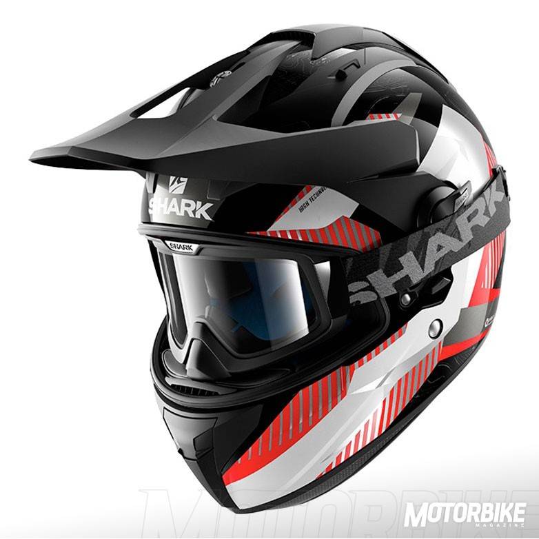 El SHARK Explore-R es toda una revolución en el segmento de los cascos para todo uso, ya que se transforma fácilmente de casco de carretera a off-road y viceversa. Está fabricado en fibra de carbono aramida y fibras multiaxiales, en dos tamaños de calota para que se ajuste lo máximo posible a cada talla. Gracias a los materiales utilizados, tiene un peso muy reducido, de tan sólo 1.350 gramos en su versión Carbon Skin. Viene de serie con pantalla clara, gafas off-road de lente ahumada y visera, con lo que puedes elegir como usarlo en función de la moto que tengas o que vayas a utilizar. También puedes personalizar la montura de las gafas en dos colores, negro o blanco y el color de la lente en cinco opciones distintas. En su configuración como integral, la pantalla dispone de tratamiento exterior antirayas y antivaho, y cuenta con el sistema Autoseal System, que permite que la pantalla se adhiera a la junta del casco, lo que proporciona un mayor aislamiento. Además, la pantalla viene con sistema de desmontaje rápido. Tiene un visor solar interno, y sus acolchados interiores son desmontables y lavables. Pero uno de los accesorios más destacados es un cubrecuello desplegable que va alojado en un compartimiento con cremallera en la zona de la barbilla. Cuenta con cierre de anilla micrométrica ajustable y lo puedes encontrar en seis colores diferentes.