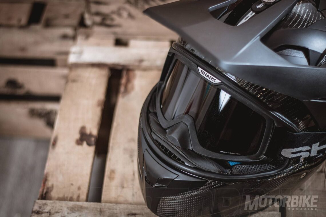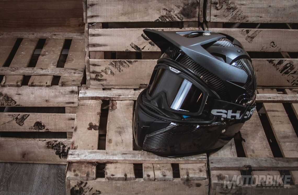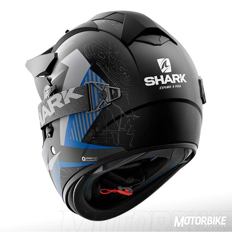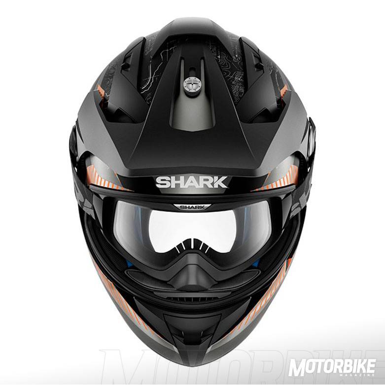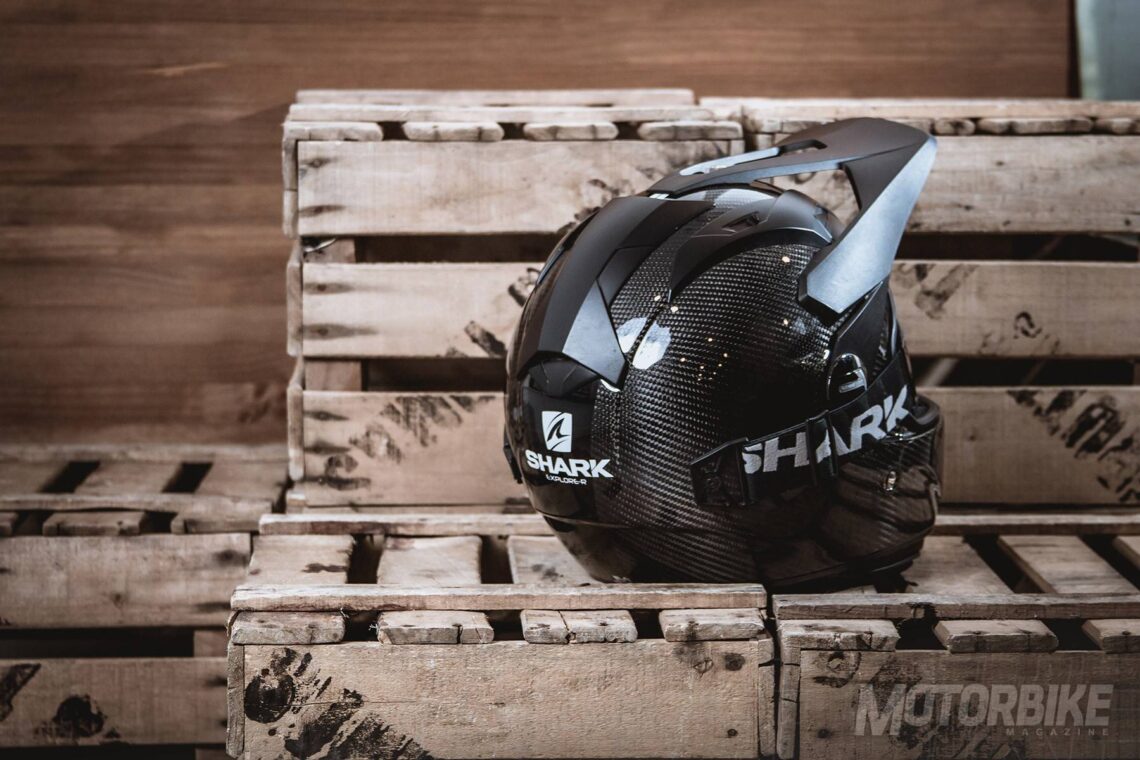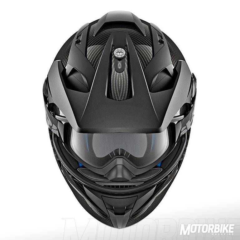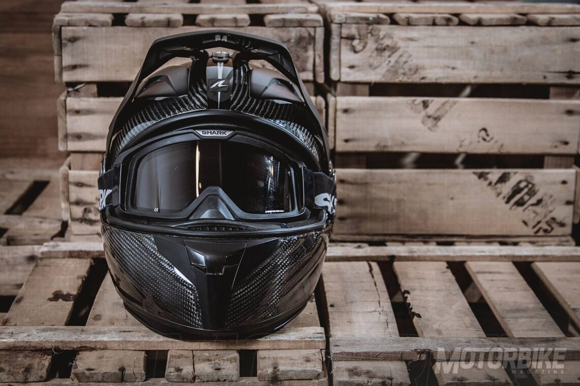 El SHARK Explore-R es toda una revolución en el segmento de los cascos para todo uso, ya que se transforma fácilmente de casco de carretera a off-road y viceversa. Está fabricado en fibra de carbono aramida y fibras multiaxiales, en dos tamaños de calota para que se ajuste lo máximo posible a cada talla. Gracias a los materiales utilizados, tiene un peso muy reducido, de tan sólo 1.350 gramos en su versión Carbon Skin. Viene de serie con pantalla clara, gafas off-road de lente ahumada y visera, con lo que puedes elegir como usarlo en función de la moto que tengas o que vayas a utilizar. También puedes personalizar la montura de las gafas en dos colores, negro o blanco y el color de la lente en cinco opciones distintas. En su configuración como integral, la pantalla dispone de tratamiento exterior antirayas y antivaho, y cuenta con el sistema Autoseal System, que permite que la pantalla se adhiera a la junta del casco, lo que proporciona un mayor aislamiento. Además, la pantalla viene con sistema de desmontaje rápido. Tiene un visor solar interno, y sus acolchados interiores son desmontables y lavables. Pero uno de los accesorios más destacados es un cubrecuello desplegable que va alojado en un compartimiento con cremallera en la zona de la barbilla. Cuenta con cierre de anilla micrométrica ajustable y lo puedes encontrar en seis colores diferentes.