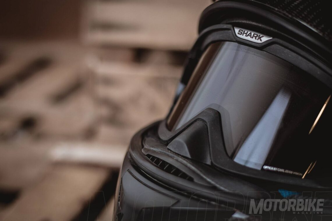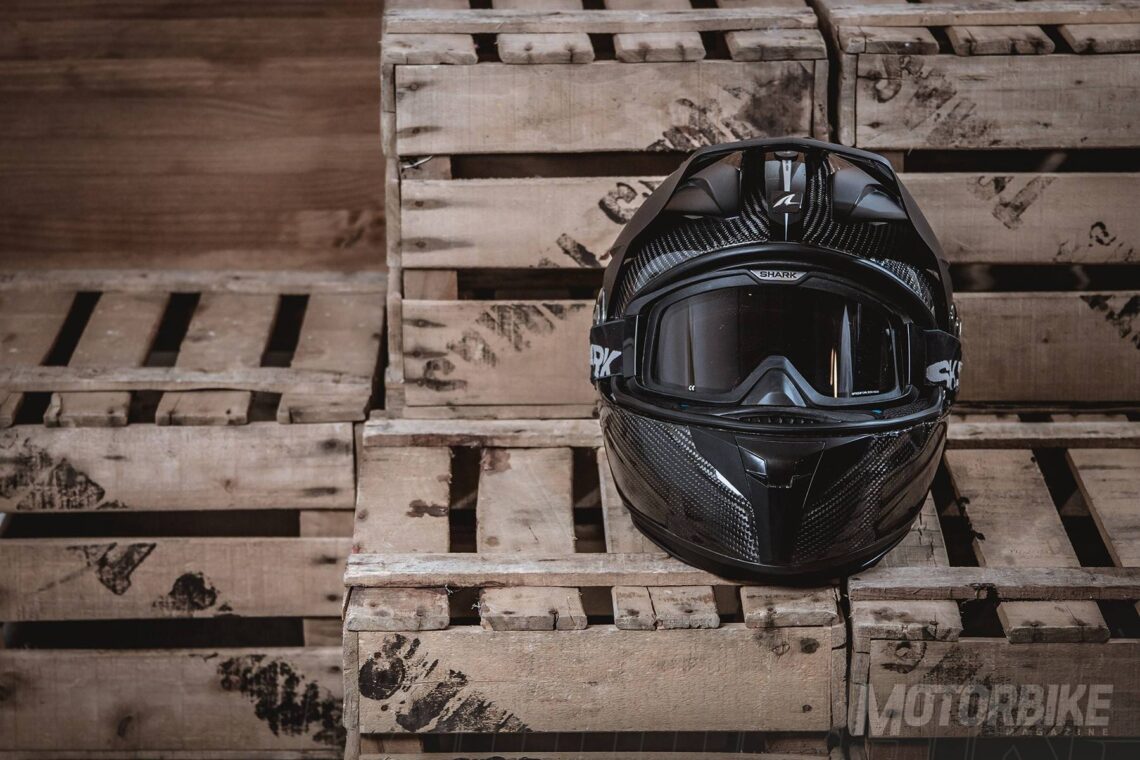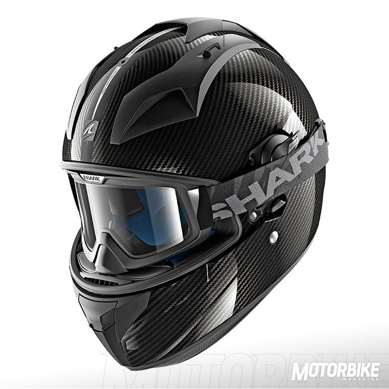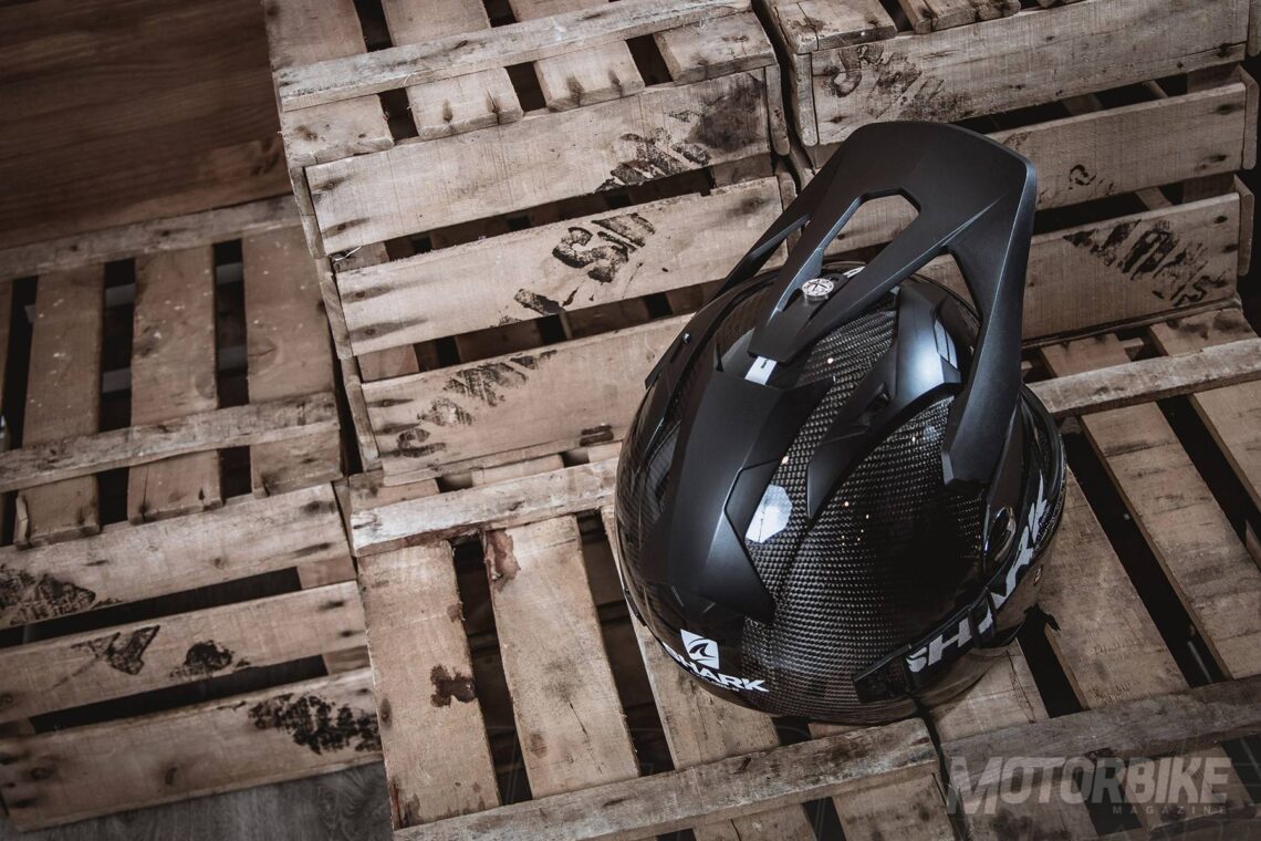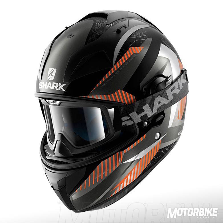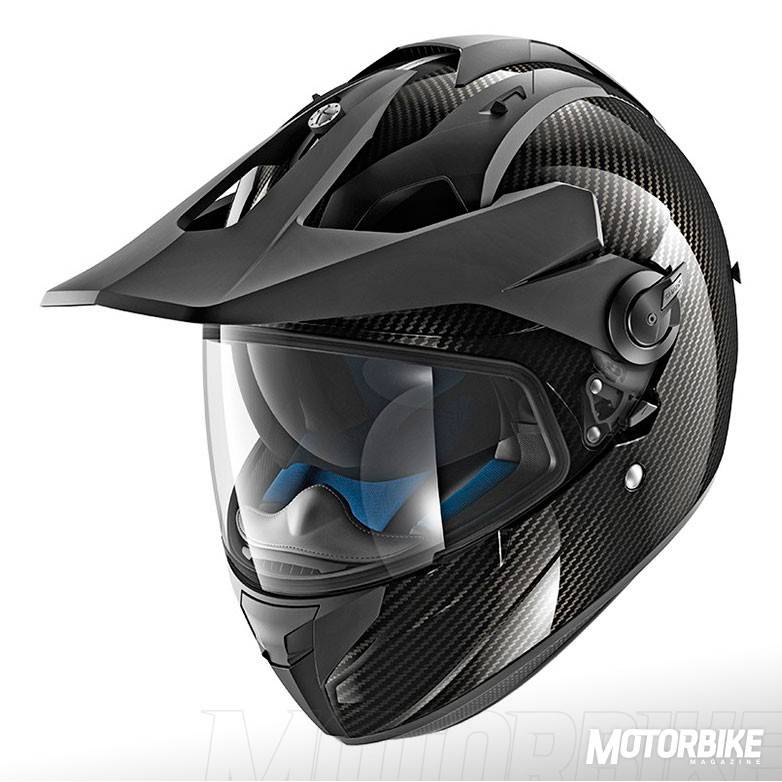 El SHARK Explore-R es toda una revolución en el segmento de los cascos para todo uso, ya que se transforma fácilmente de casco de carretera a off-road y viceversa. Está fabricado en fibra de carbono aramida y fibras multiaxiales, en dos tamaños de calota para que se ajuste lo máximo posible a cada talla. Gracias a los materiales utilizados, tiene un peso muy reducido, de tan sólo 1.350 gramos en su versión Carbon Skin. Viene de serie con pantalla clara, gafas off-road de lente ahumada y visera, con lo que puedes elegir como usarlo en función de la moto que tengas o que vayas a utilizar. También puedes personalizar la montura de las gafas en dos colores, negro o blanco y el color de la lente en cinco opciones distintas. En su configuración como integral, la pantalla dispone de tratamiento exterior antirayas y antivaho, y cuenta con el sistema Autoseal System, que permite que la pantalla se adhiera a la junta del casco, lo que proporciona un mayor aislamiento. Además, la pantalla viene con sistema de desmontaje rápido. Tiene un visor solar interno, y sus acolchados interiores son desmontables y lavables. Pero uno de los accesorios más destacados es un cubrecuello desplegable que va alojado en un compartimiento con cremallera en la zona de la barbilla. Cuenta con cierre de anilla micrométrica ajustable y lo puedes encontrar en seis colores diferentes.