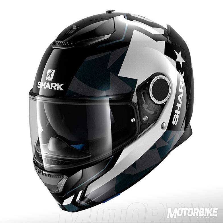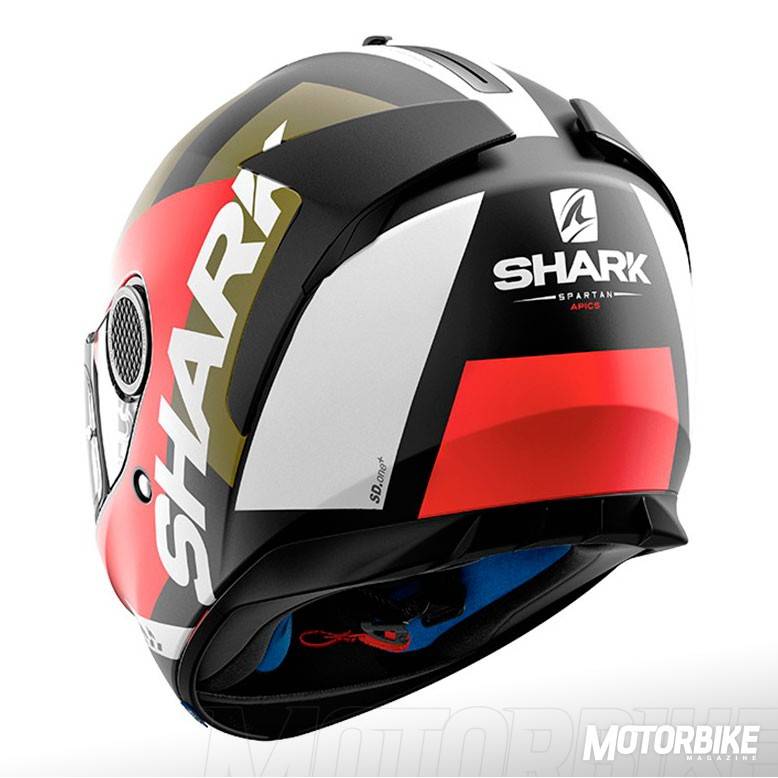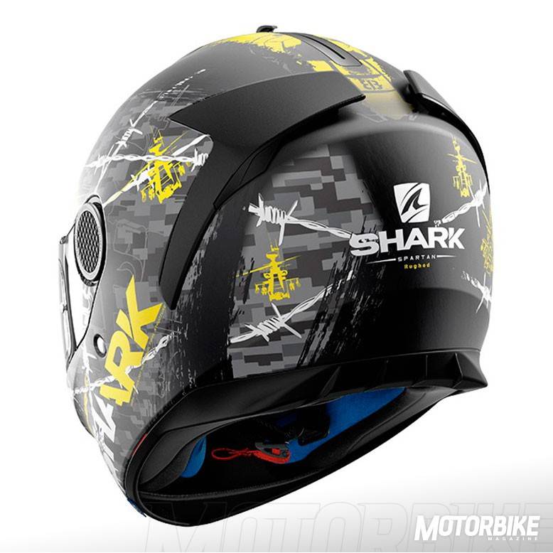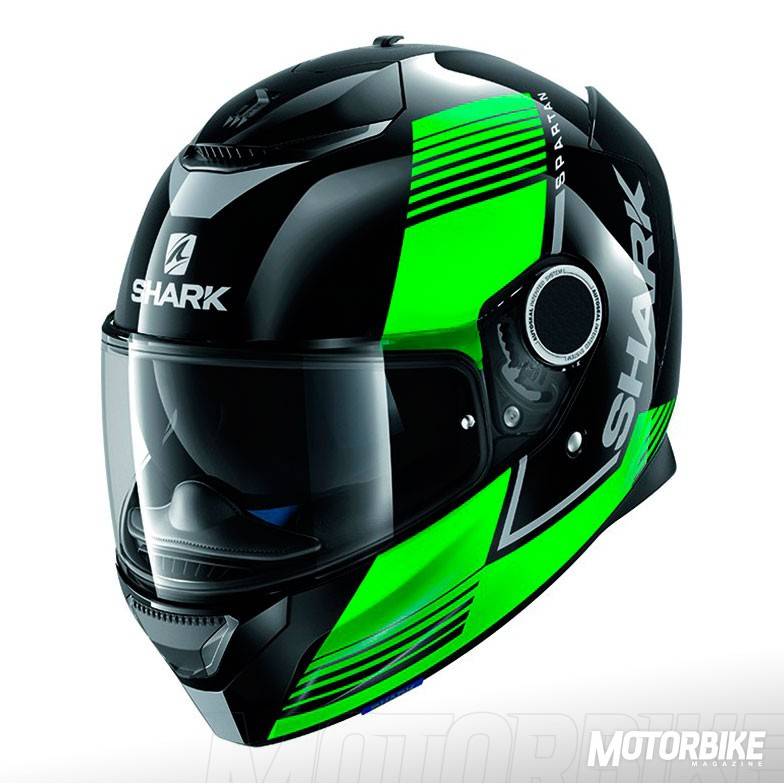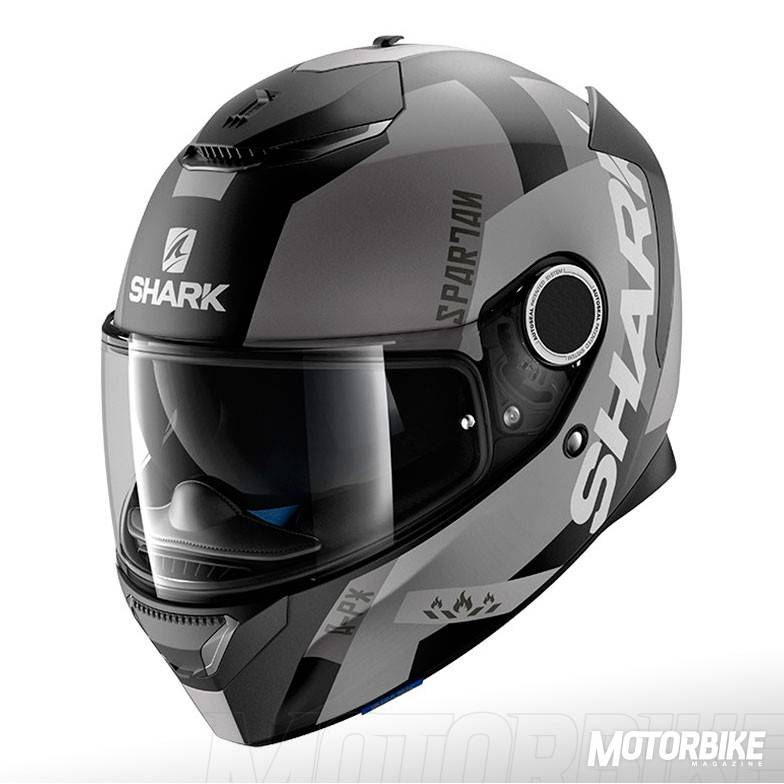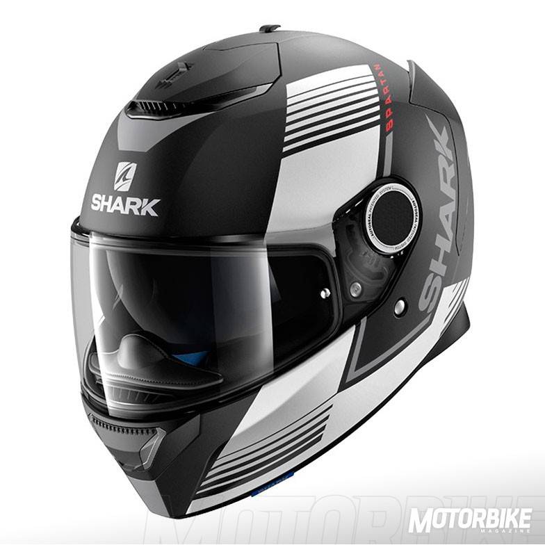 El SHARK Spartan es un integral que se ha construido en fibra de vidrio en dos tamaños distintos de calota para que se adapte perfectamente a todas las tallas. Su interior es completamente desmontable y lavable, además de antialergénico y personalizable para su perfecto ajuste. Cuenta con dos spoilers traseros sobre las salidas de aire, que optimiza la estela aerodinámica y evita las turbulencias, además de mejorar el enfriamiento interno. Las fijaciones laterales de la pantalla, tiene un diseño llamado “skin” que reduce los ruidos de silbido que se pueden producir en esa zona. Además, la pantalla lleva el sistema “autoseal” que adhiere la pantalla al casco para mejorar la insonorización y haciendo que el casco sea estanco al agua y al frío. También trae un visor solar integrado y Pinlock MaxVision de serie. El cierre es de tipo doble anilla y viene preparado para asegurar la comodidad de las personas que tienen que usar gafas graduadas y viene preparado para usar el sistema de comunicación Sharktooth. Las tallas disponibles van de la XS a la XXL.