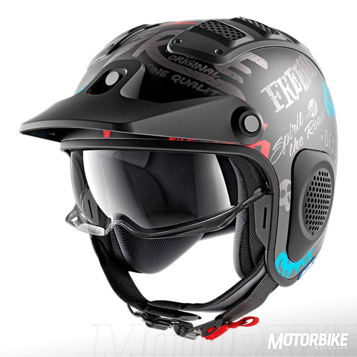 El casco Shark X-Drak es un modelo jet que evoluciona el Drak (que seguirá a la venta) y que incorpora algunas modificaciones importantes respecto a este último, como la ausencia de la máscara que cubre la barbilla y de las gafas (aunque ambas se ofrecen como opción), ya que incorpora un visor claro interno retráctil, con tratamiento anti-vaho y anti-rayas.