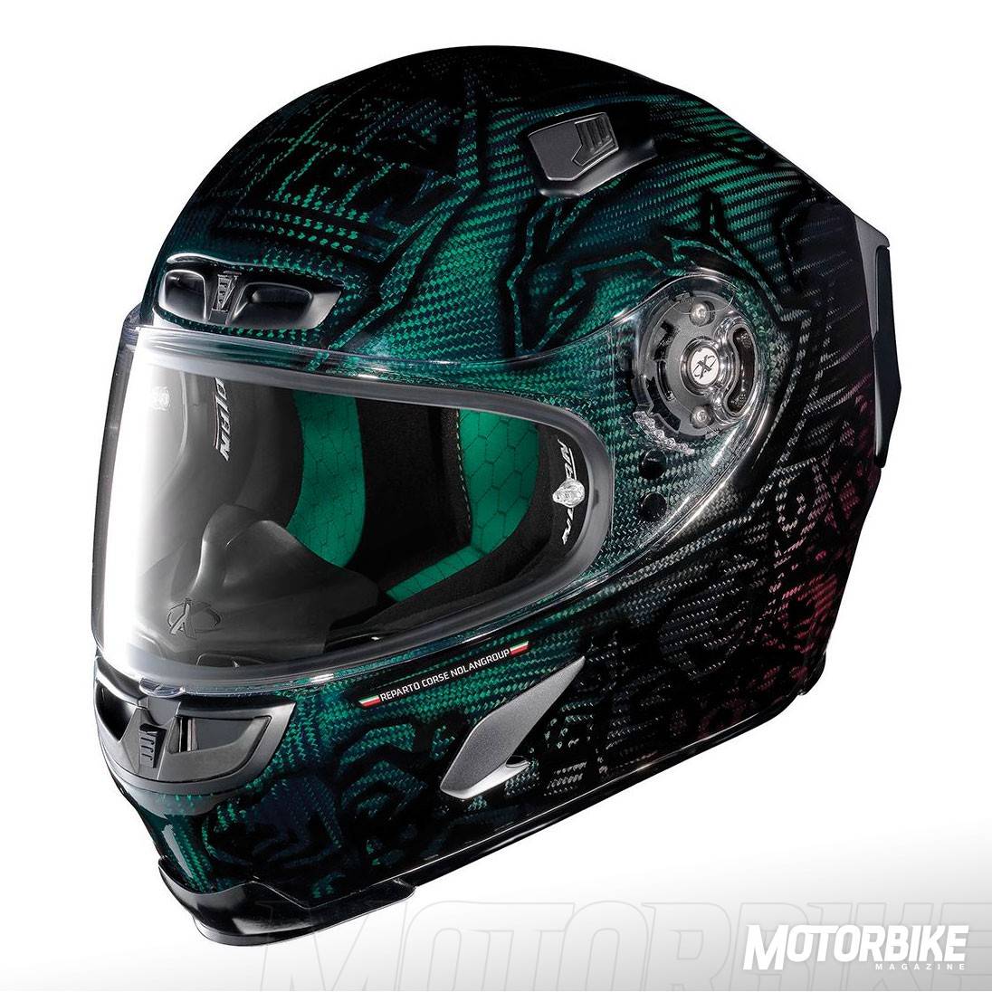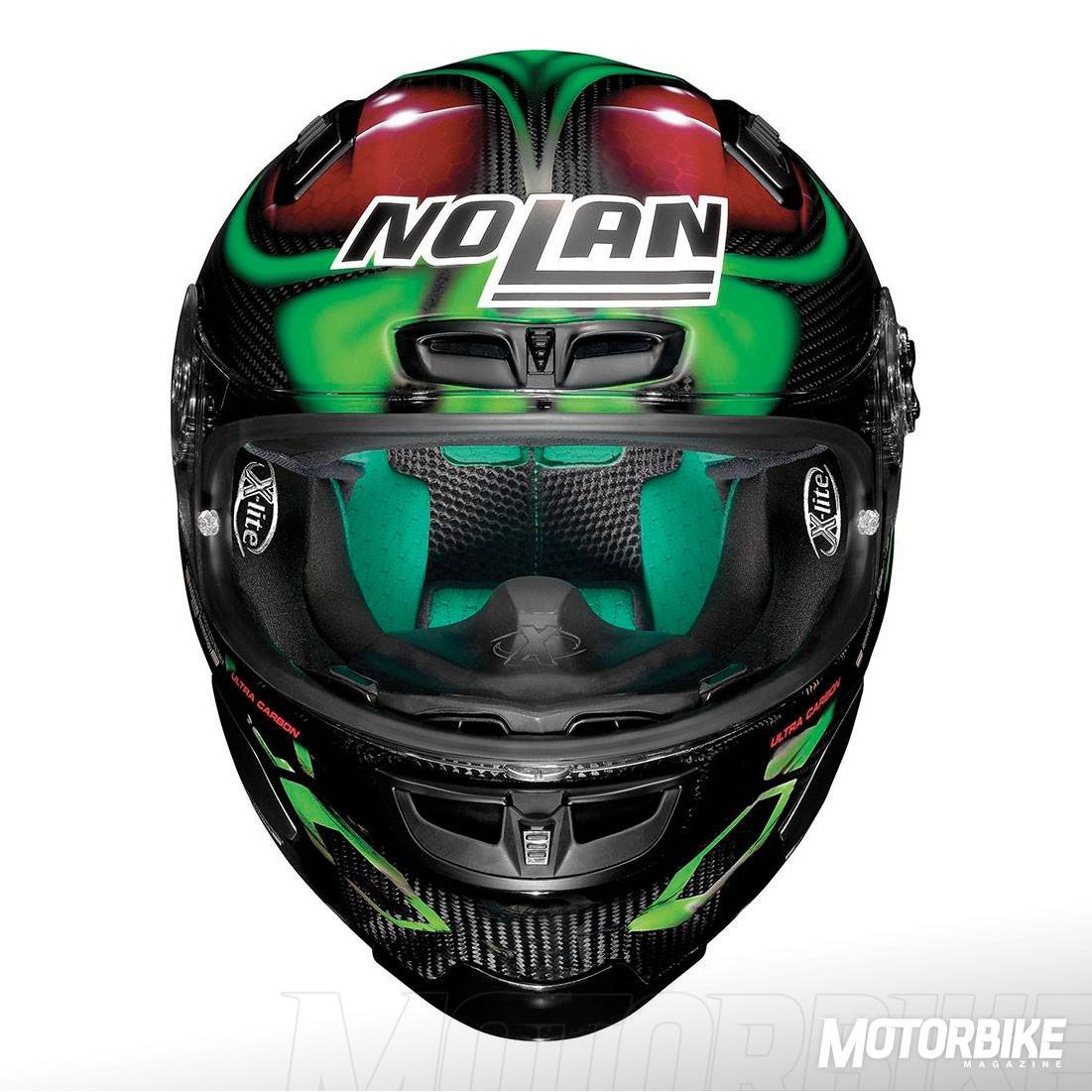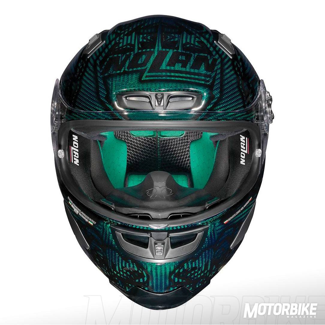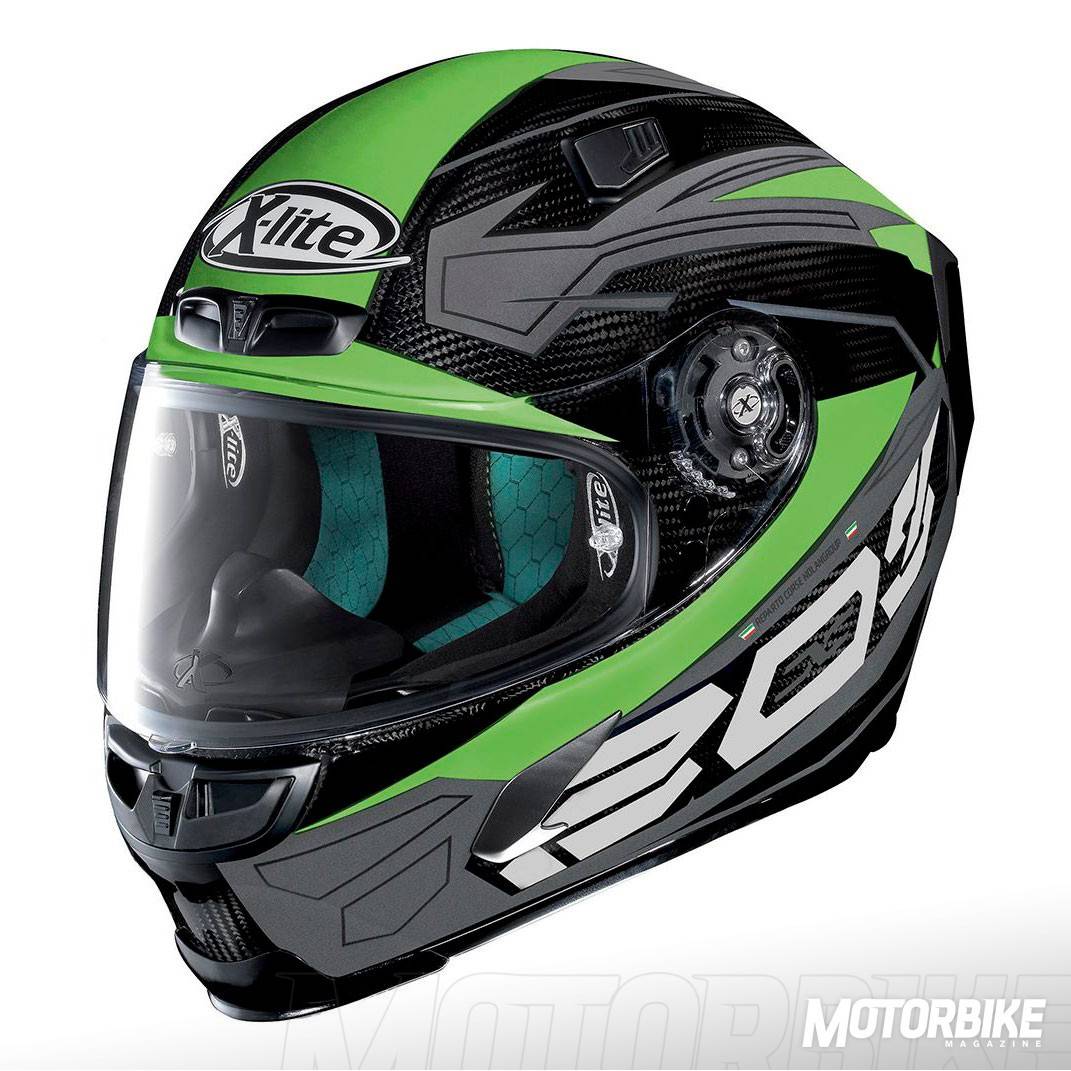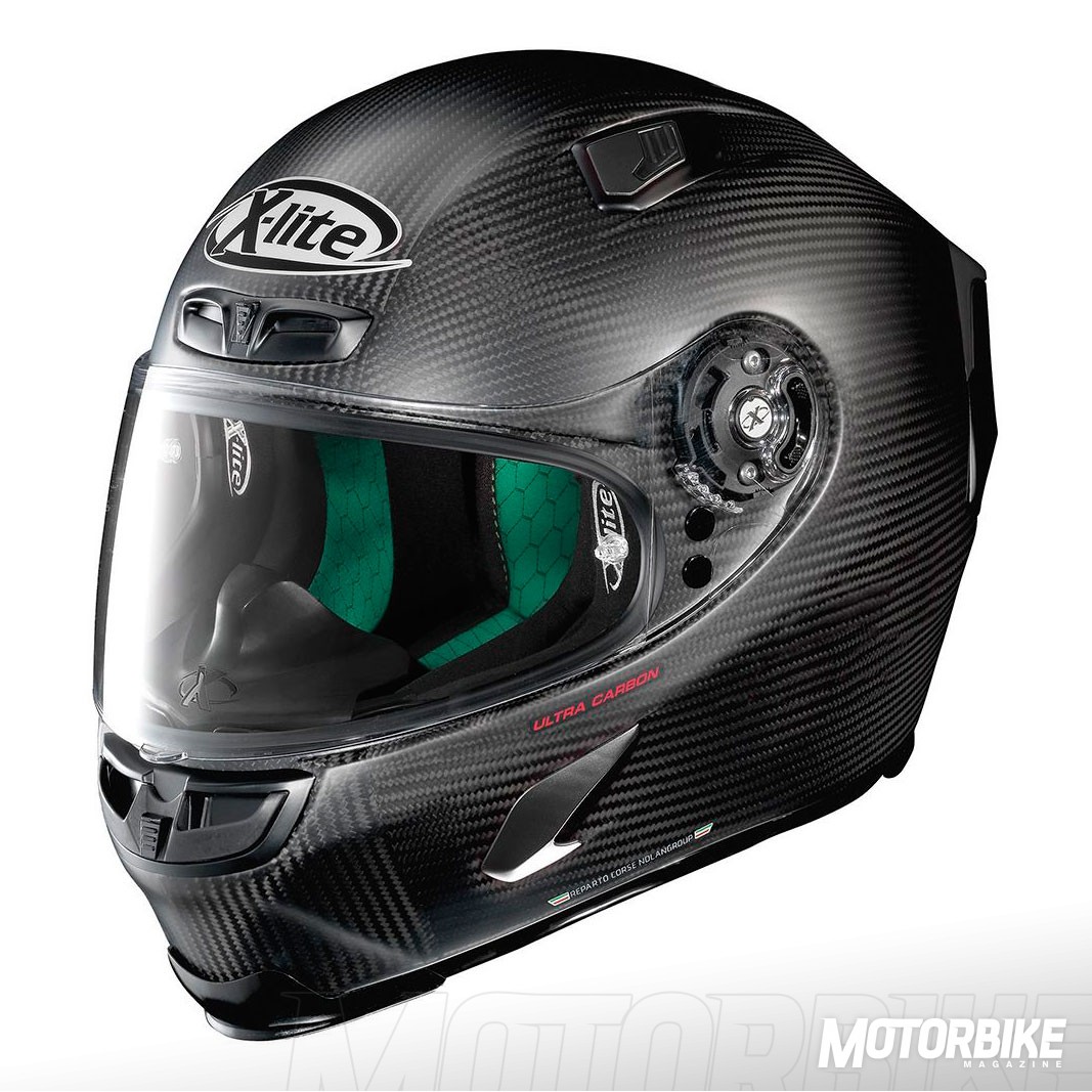 El nuevo X-Lite X-803 Ultra Carbon es la nueva y evolucionada versión del casco más deportivo de NolanGroup, el X-802RR. Para su construcción se ha usado un alto contenido de fibra de carbono extremadamente ligero y resistente, y se ha aprovechado toda la experiencia de la marca en los mundiales de MotoGP y de Superbike. La adopción de un alerón posterior ajustable, hace que se gane en aerodinámica y se eviten turbulencias a alta velocidad.