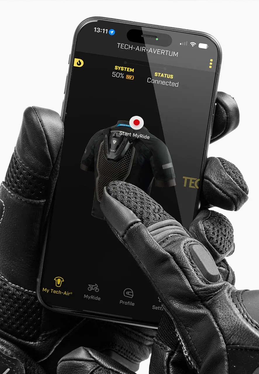 Además, dispone de conectividad Bluetooth gracias a la aplicación para móviles Tech-Air, la cual te permite realizar un seguimiento del estado operativo del sistema, la duración de la batería y el análisis de tu pilotaje, que incluye incluso dibujar tu ruta en un mapa con acceso total. La aplicación te permite escoger entre modos Calle (Street) y Carrera (Race).