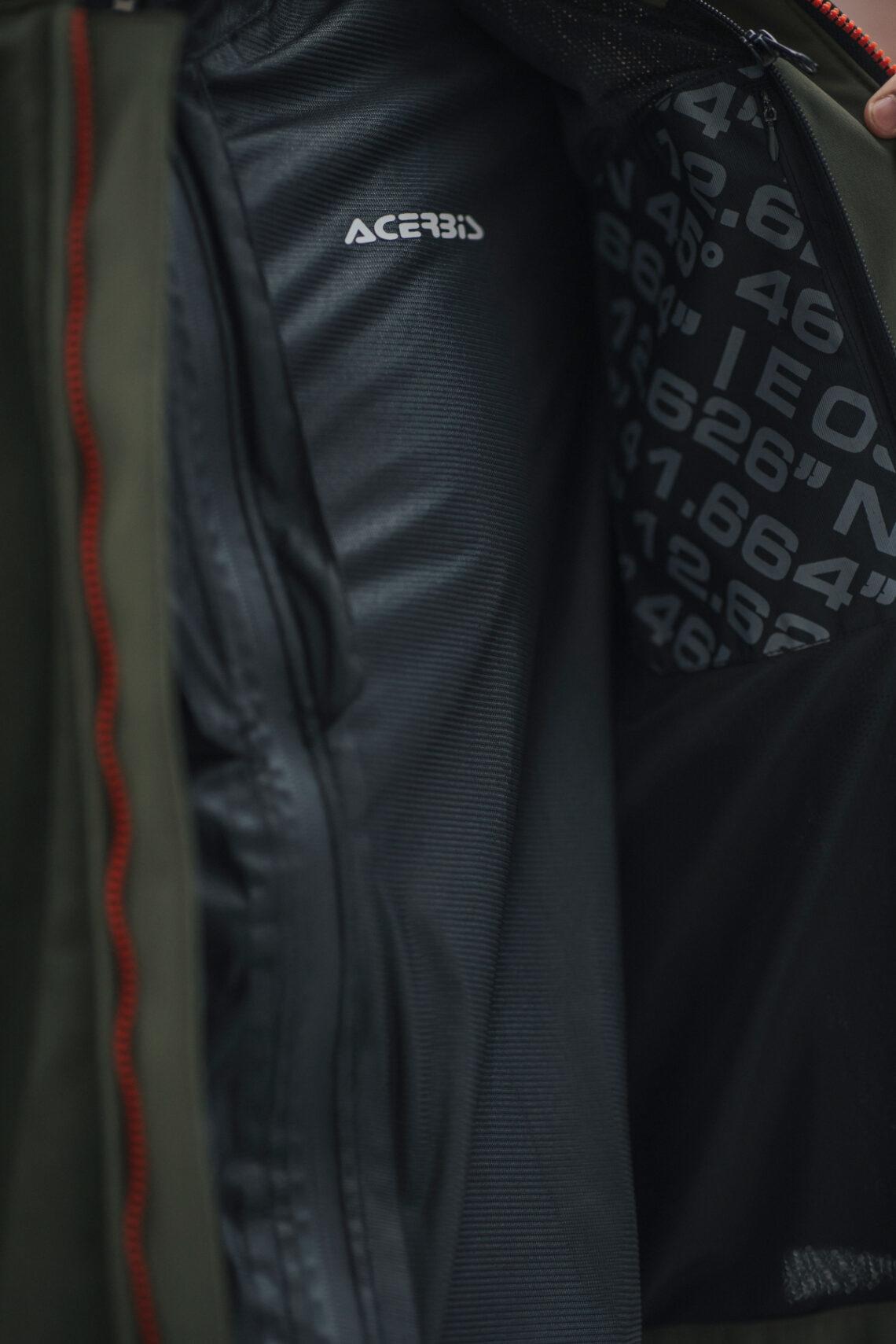 Los detalles reflectantes con el logotipo de Acerbis en las mangas y la membrana mejoran la visibilidad del motorista por la noche, y el forro de malla completa la chaqueta, ofreciendo mayor comodidad y ventilación.