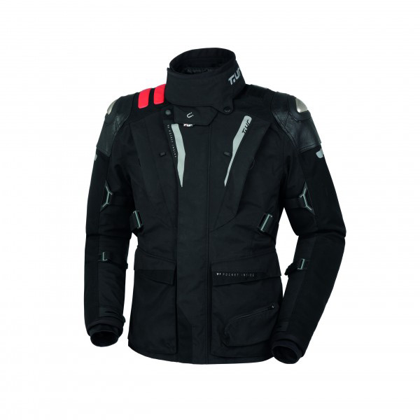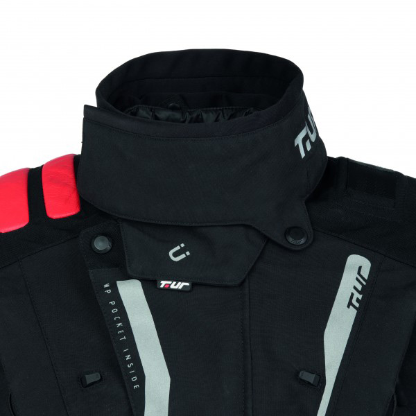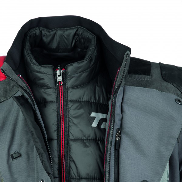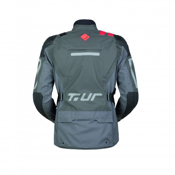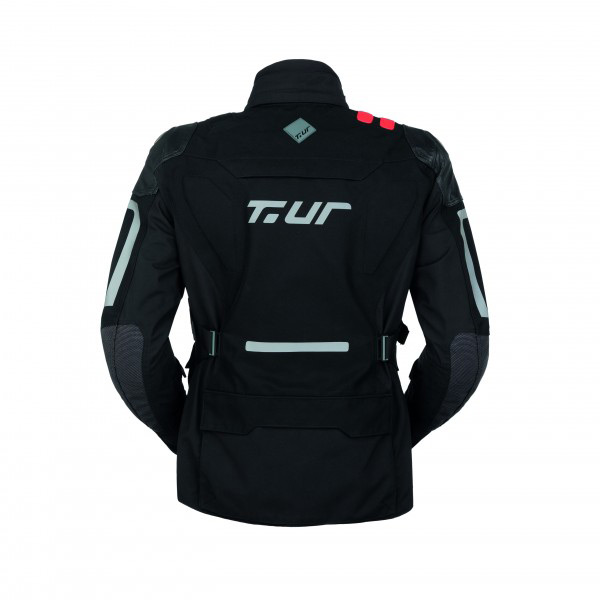 Por último, cabe destacar que T.ur ha aplicado el sistema Safety&Support en la J-ZERO, que permite al piloto colocar un cinturón lumbar elástico en el interior de la chaqueta para mejorar la posición del protector de espalda y repartir el peso de la propia prenda de forma más uniforme alrededor del cuerpo. Para más comodidad, la chaqueta cuenta con una cinta con pasantes sobre los hombros para colocar la cámara de acción, un bolsillo trasero inferior para ubicar un traje de agua, y una cremallera de unión con el pantalón. Se encuentra disponible en colores gris/rojo y negro/rojo.