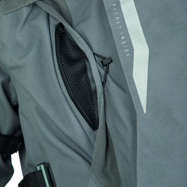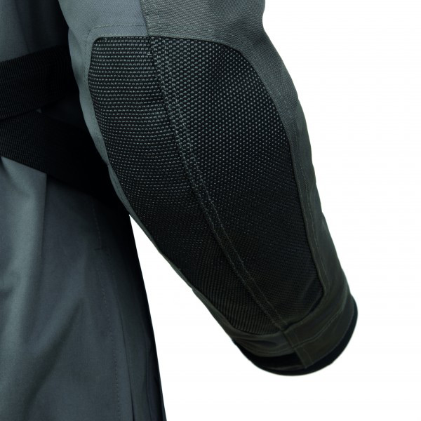 La J-ZERO ha sido confeccionada en CORDURA® Oxford 600, que ofrece resistencia en los puntos de mayor impacto, dispone de inserciones de tejido SUPERFABRIC® en los codos de altísima resistencia y placas de metal en los hombros. Está certificada por la CE según la normativa prEN17092 y dispone de protecciones ventiladas de nivel 2 en codos y hombros, y bolsillo para ubicar espaldera y protecciones en la zona del pecho. También incorpora un sistema reflectante.