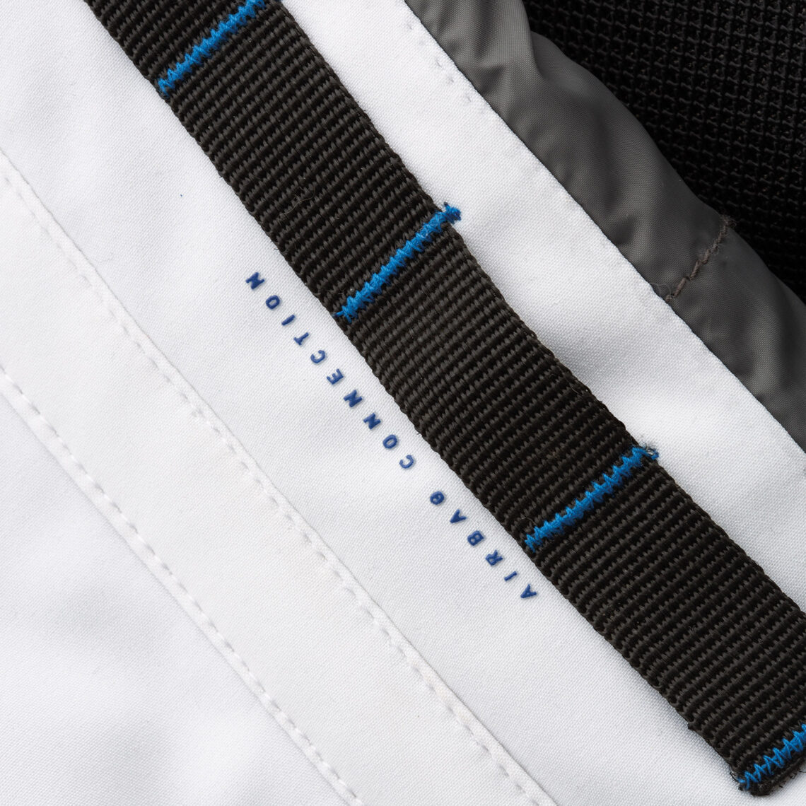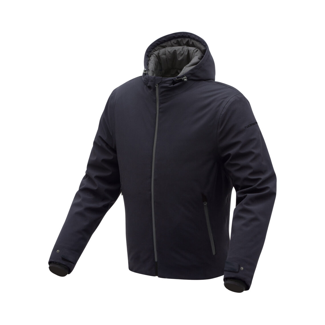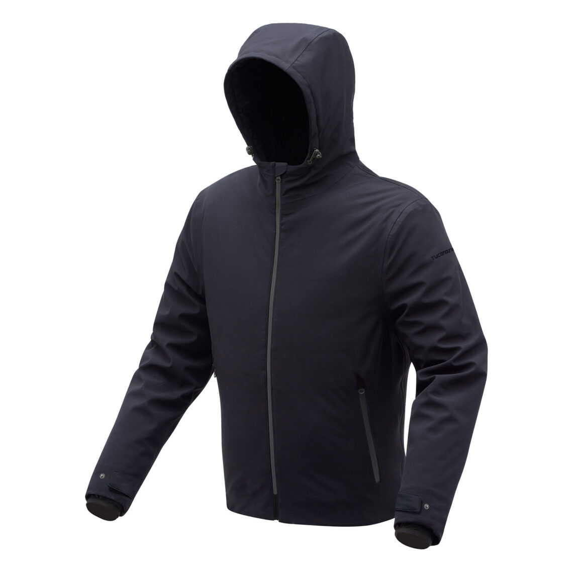 Sus características incluyen una capucha ergonómica y ajustable antideslizante, una cremallera central con solapa (protege el depósito de arañazos), un elástico para enganchar los auriculares, bolsillos interiores/exteriores de varios tamaños que permiten llevar los objetos más esenciales y ajuste en el bajo mediante cordón y puños ajustables. También puede completarse con sistema AIRSCUD CONNECTION para acoplar el chaleco AIRBAG IN&MOTION.