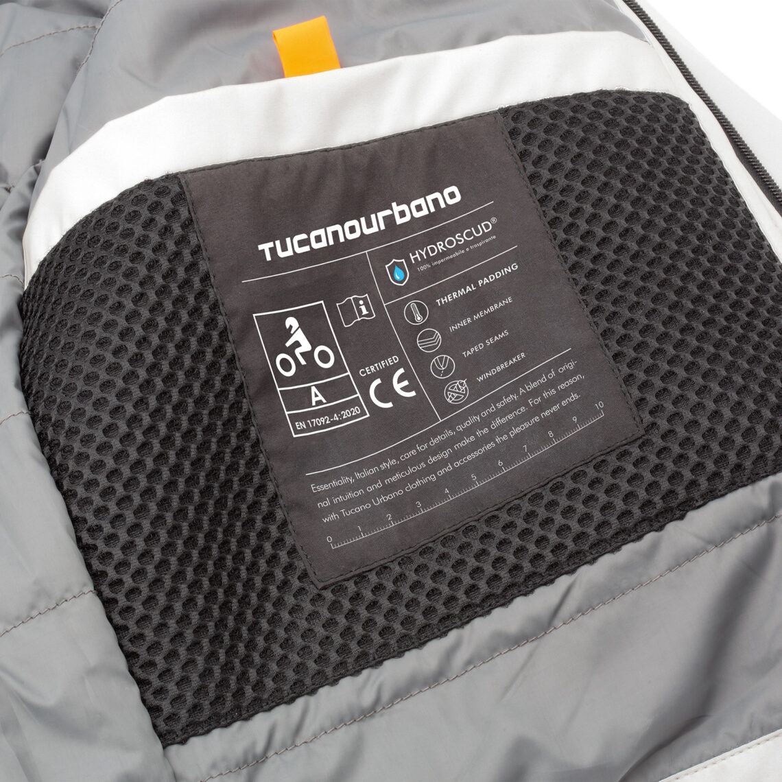 Esta chaqueta de invierno cuenta con certificado CE en Clase A según la directiva EN17092:2020, con protección frente a la abrasión y el impacto, sin limitar la capacidad de conducción. Incluye protecciones CPS AEROSOFT ultraligeras y ventiladas de nivel 1 en hombros y codos, además de bolsillo para espaldera.