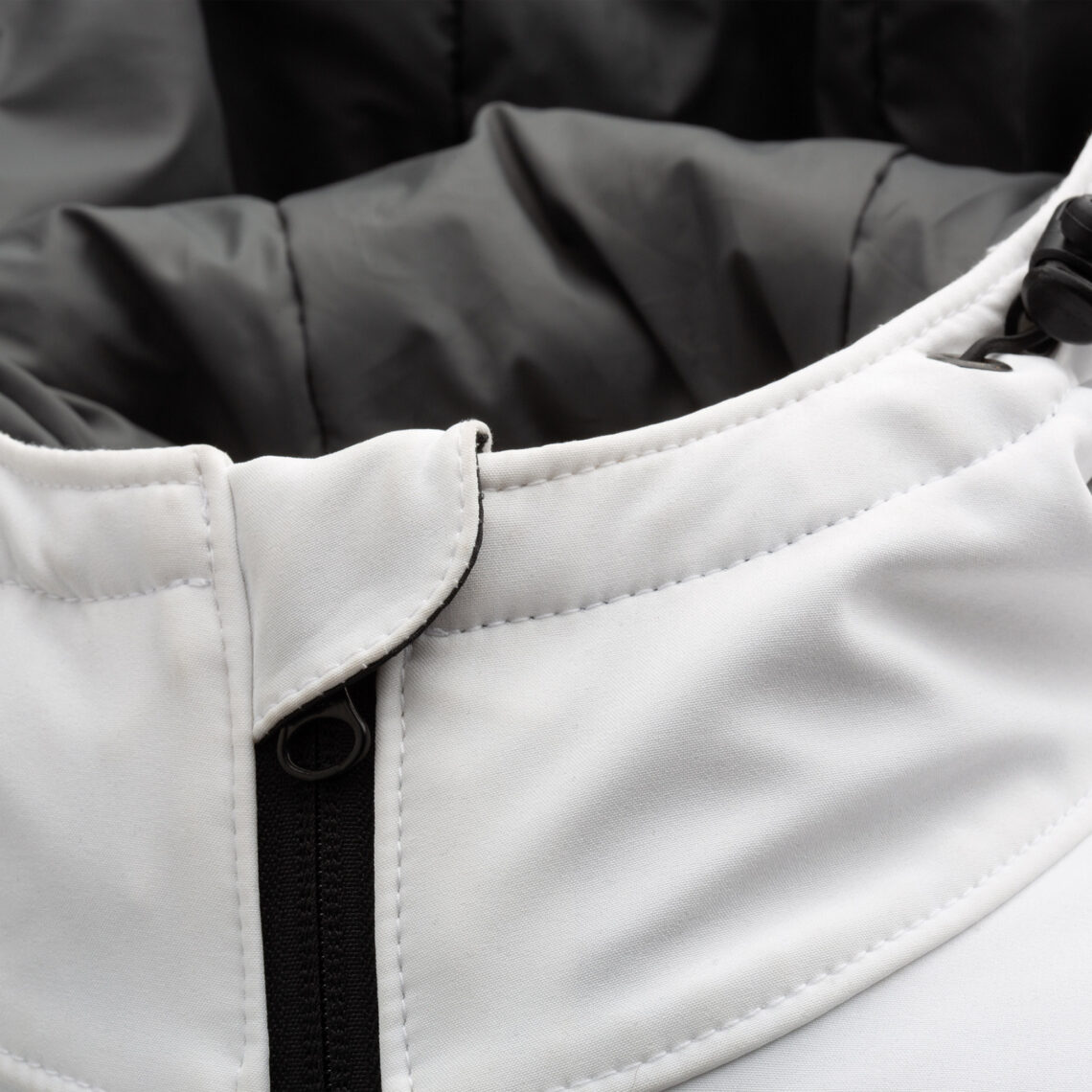 Bormio es una chaqueta laminada, térmica, elástica y con sistema HYDROSCUD, es decir, confeccionada en tres capas: una exterior elástica de poliéster de alta resistencia con tratamiento hidrorrepelente; una membrana transpirable, cortaviento e impermeable con una elevada columna de agua con costuras selladas; y una interior en redecilla. A lo que se le suma un acolchado de guata térmica de poliéster, además de cremalleras hidrorrepelentes y puños cortavientos con orificio para el pulgar.