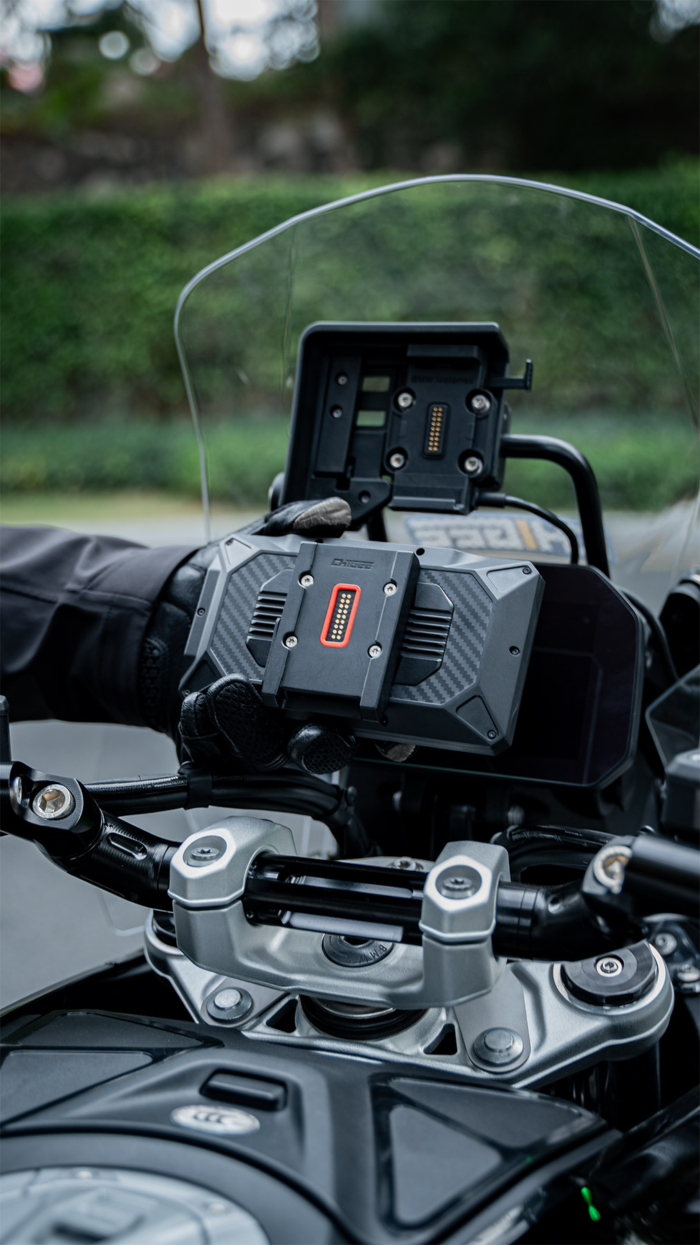 El dispositivo permite diferentes opciones de montaje con sistema de liberación rápida, tanto en manillares estándar como en barras transversales, y es compatible con el sistema Nav Prep de BMW mediante un módulo específico.