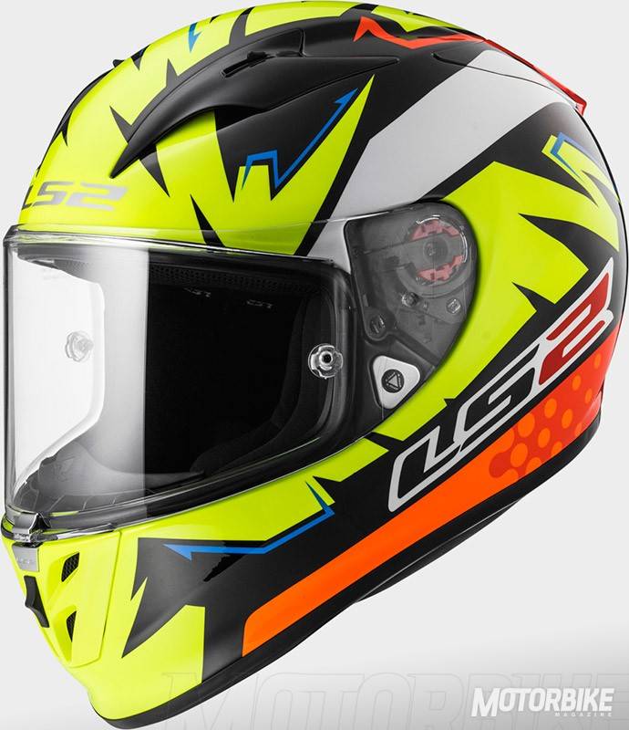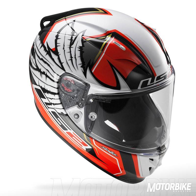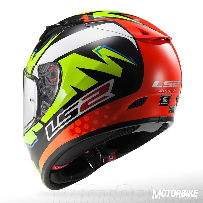 El ARROW REPLICA, de la marca LS2 cuenta con una calota fabricada en un compuesto de tres fibras con tres tamaños de calota para un ajuste perfecto a cada talla. Cuenta con un sistema de extracción de emergencia rápida para poder sacar el casco de una manera segura en caso de accidente. Su interior tiene un acolchado preformado y cortado con laser de tejido transpirable y antibacteriano totalmente desmontable y lavable. El sistema de ventilación cuenta con entradas de aire en la parte superior y en la mentonera que se complementan con las salidas traseras que garantizan una buena circulación del flujo del aire, además de cubrenariz y cubrebarbilla para reducir el vaho en caso de bajas temperaturas. La pantalla lleva el sistema Fog Fighter, una lente interior incorporada en la pantalla corregida ópticamente, lo que hace que sea completamente antivaho. Además, se puede cambiar sin ningún tipo de herramientas y su cierre con un retén de muelle asegura que no quede abierta en ningún momento. Su forma permite una mejor visión lateral, algo muy útil en conducción deportiva o de circuito. Su cierre es de doble anilla, con un refuerzo de la correa en la mentonera y un triángulo de metal que sirve para reforzar la sujeción del barbiquejo a la calota, lo que le da una mayor resistencia al impacto.