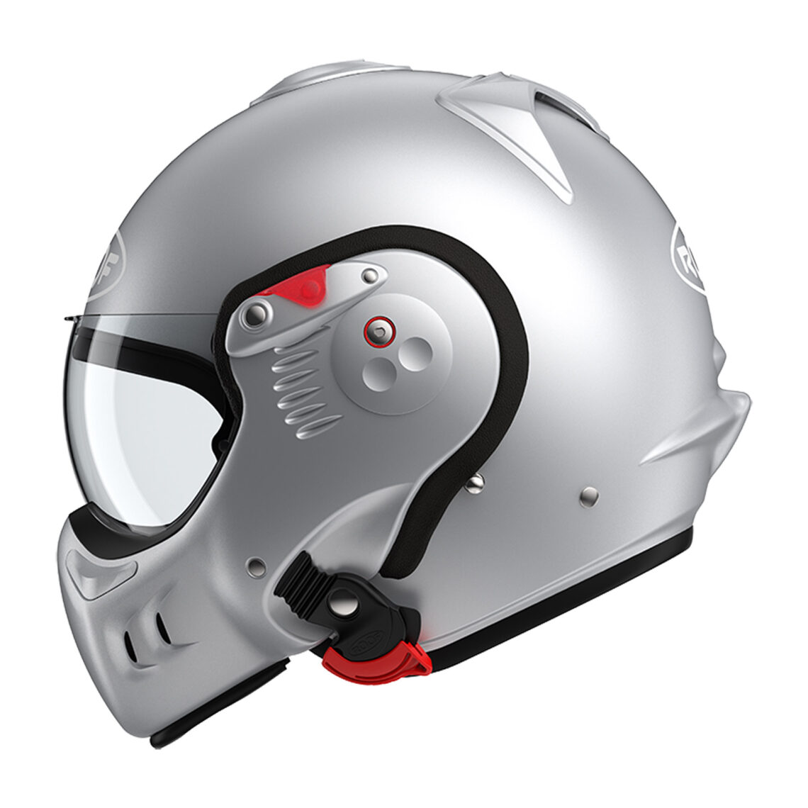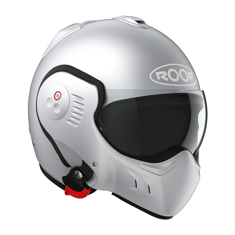 El ROOF Boxer Alpha incorpora el sistema patentado FlexLocker, que mantiene la mentonera fija en posición Jet durante su uso, evitando que se cierre de manera accidental en situaciones imprevistas. La calota, fabricada en fibra de vidrio, combina resistencia y ligereza, y ha sido diseñada para un uso intensivo tanto en posición Full-face como Jet.