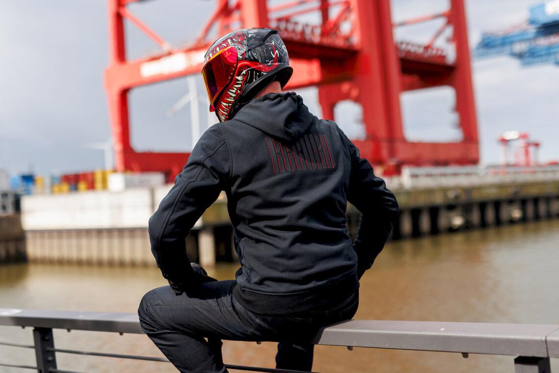 Esta sudadera con capucha de look informal está fabricada en un poliéster resistente a rasgaduras y abrasión, que no requiere refuerzos adicionales. Cuenta con protecciones de celda Xelion en hombros y codos, con la ventaja de que los protectores de codo son ajustables individualmente. La espaldera específica (4SEVN BP1) es opcional.