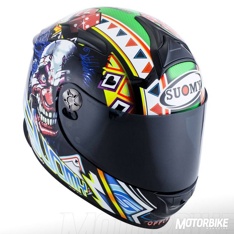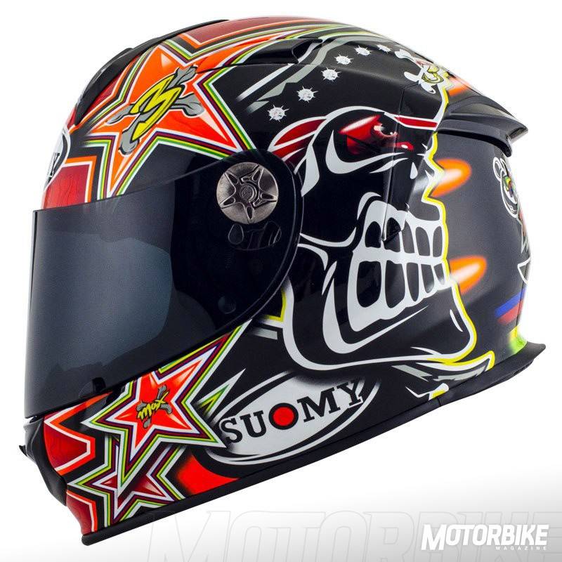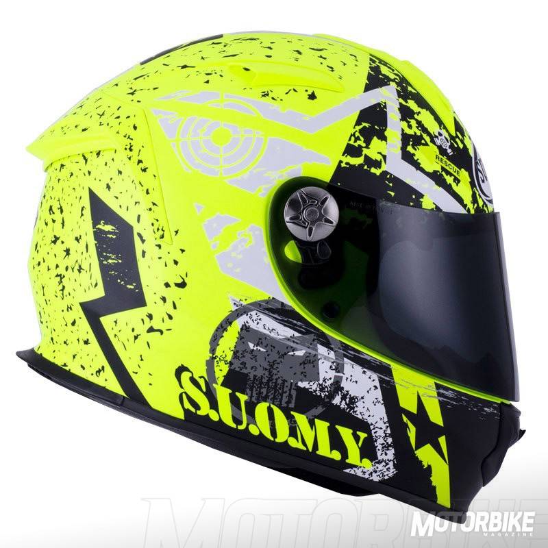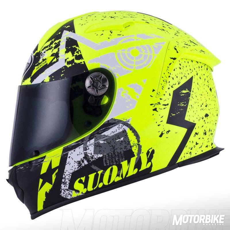 El SR SPORT de Suomy está fabricado en material tricarboco, una mezcla de Kevlar, carbono y fibra en diferente densidad lo que garantiza una mayor resistencia en caso de impacto. Sus estudiados canales de ventilación aseguran un flujo de aire que mantiene fresco el interior del casco a la vez que logra evacuar el aire caliente. El interior del casco es totalmente desmontable y lavable, y tiene diferentes espesores para lograr una perfecta personalización y adaptarse perfectamente a la cara y cabeza del piloto. Fabricadas en tela de Coolmax, que absorbe el sudor, siendo ligero, suave y transpirable. La pantalla está termoformada, lo que le da una resistencia máxima con una minima distorsión óptica, con tratamiento antirrayado y antivaho. El cierre es de anilla en doble D, con un curioso sistema que permite un uso fácil para fijar el cierre, incluso con los guantes puestos. Los tamaños disponibles van de la talla XS a la XXL.