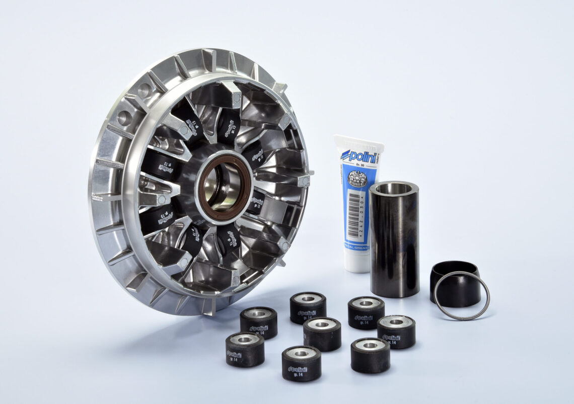 El variador Polini Maxi Hi-Speed se caracteriza por el bulón de acero al cromo-níquel con tratamiento DLC a base de carbono. Cuenta con una innovadora tecnología específica para aplicaciones de competición y aeronáutica destinada a componentes deslizantes y de alto desgaste.