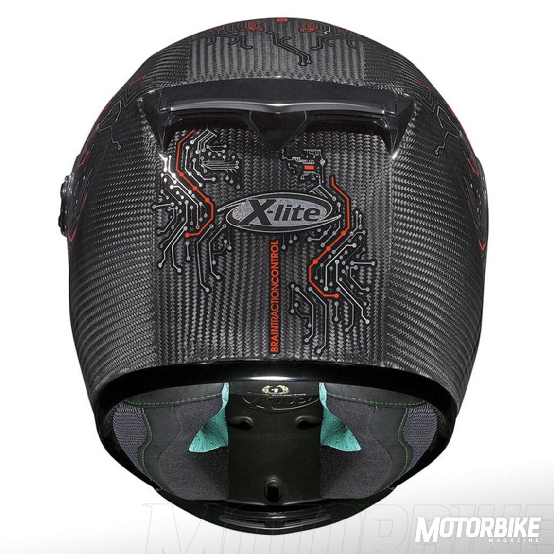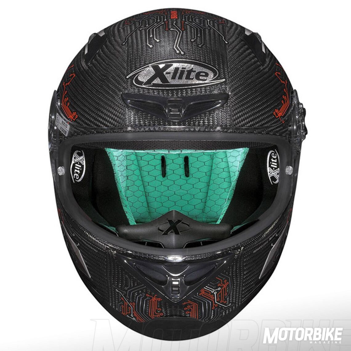 El X-Lite X-802RR Ultra Carbon está fabricado en fibra de carbono, kevlar y vidrio con tres tamaños de calota distintos. Tanto la protección de la nariz como el deflector de barbilla están diseñados para evitar que se pueda empañar la pantalla, dirigiendo el aire hacia fuera del casco. El interior se desmonta fácil y rápidamente, mediante un sistema de enganche con clics. Está realizado con tejidos que incluyen carbono activo, lo que hace que sea termorregulador, es decir, favorece la evaporación del sudor y mantiene estable la temperatura, además de ser hipoalergénico y antiestático. La pantalla tiene una amplia superficie, lo que aumenta el campo visual, tanto el central como el lateral, lo que evita la fatiga visual y aumenta la seguridad. También cuenta con un dispositivo que bloquea la visera y que evita que se abra accidentalmente a velocidades elevadas y que tiene una posición para abrirla un poco en paradas o circuilando a baja velocidad. Es completamente antivaho y cuenta con un sistema de regulación que permite ajustar la tensión de la pantalla sin tener que desmontarla. Por último, su cierre es de doble anilla.