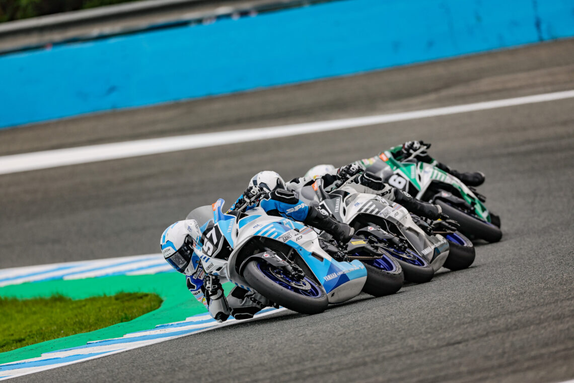 La definitiva carrera de Supersport se detuvo con bandera roja en la tercera vuelta por la lluvia. La reanudación se hizo a 10 vueltas y con la misma posición de parrilla previa. Salida con mucha precaución, aunque la lluvia dio un respiro y la pista fue mejorando. Asia se puso al frente con tres de sus pilotos luchando por puestos de podio, mientras que los europeos cedían y se quedaban atrás.