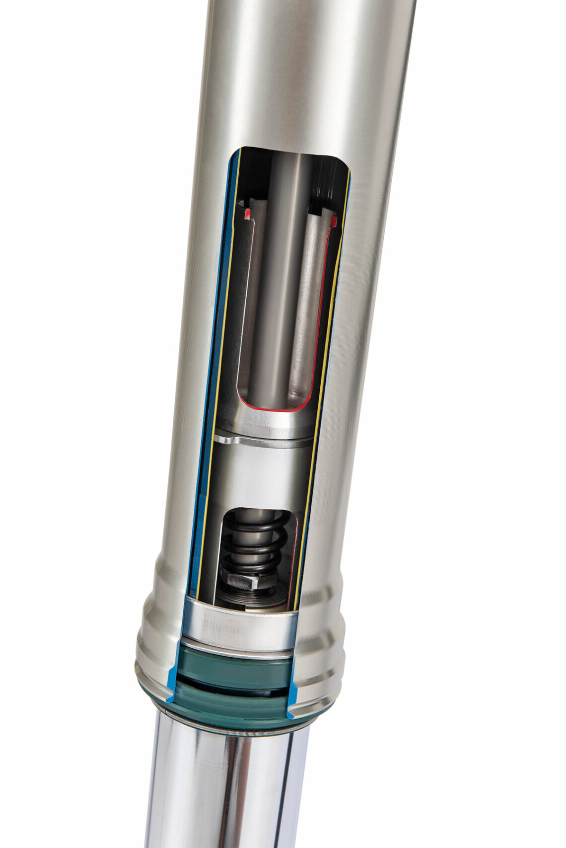 mejorado aún más en el comportamiento de la horquilla interviniendo en el pistón y el empujador de muelle. La altura total de la moto sigue siendo de 930 mm (20 mm menos que la RR Race), que hace que el piloto tenga un mejor contacto con el suelo en cualquier situación.- Horquilla SHC (Separate Hydraulic Chamber): Disposición asimétrica de la horquilla, introducida para optimizar el funcionamiento hidráulico y reducir el peso total (unos 250 g) del componente. La división de funciones entre el tubo derecho y el izquierdo permite un mayor control de los ajustes, con el lado derecho encargado del aspecto elástico y el izquierdo del sistema hidráulico. Ambos vástagos han sido perfeccionados. Se ha rediseñado específicamente el empujador de muelles, lo que ha mejorado el flujo de aceite (para la lubricación necesaria de los componentes mecánicos), evitando aumentos de presión a altas velocidades que afectaban al deslizamiento del componente. El resultado es una respuesta más lineal, con un comportamiento más predecible, independientemente del tipo de obstáculo.