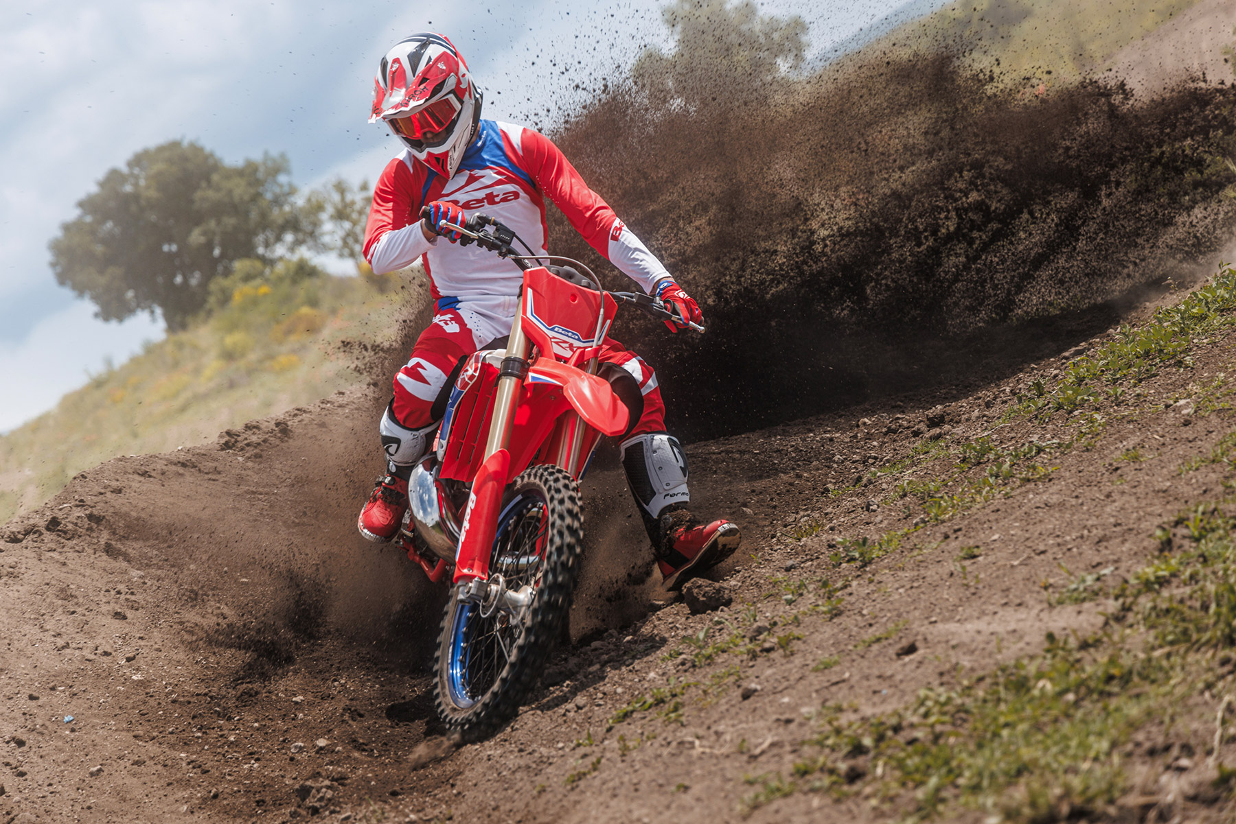 - Cambio. Es el único componente en común en ambos modelos 2T en cuanto a su espaciado, aunque con una relación final con un 13/50 para la 250 y un 13/47 para la 350.- Escape. También nuevo con el diámetro interno del silenciador específico para cada cilindrada.