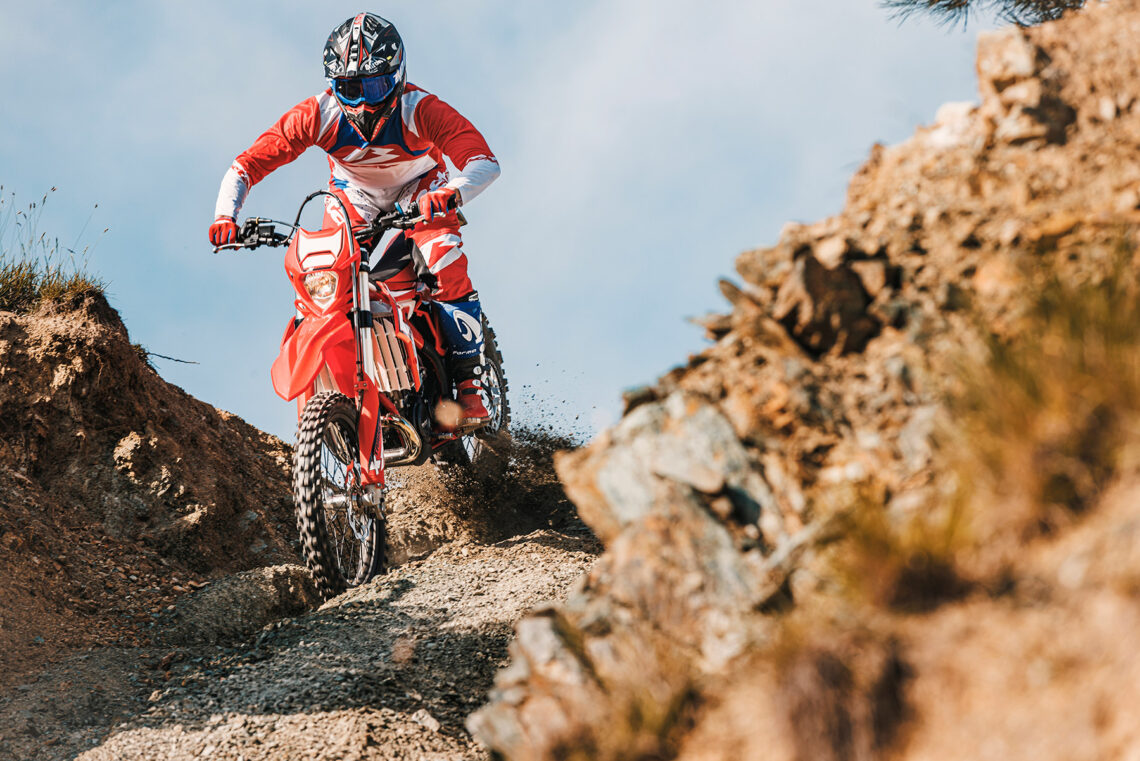 - En segundo lugar: al igual que el dispositivo «Kill-Switch» desconecta una moto de trial cuando el punto de contacto magnético conectado a la muñeca del piloto y al manillar de la moto se desconecta, lo mismo ocurre con la nueva llave con la que está equipada la Xtrainer, que, a diferencia del interruptor «Kill-Switch», está codificada para que se empareje de forma exclusiva con la moto. El apagado del vehículo evita daños en el motor en caso de accidente y proporciona mayor seguridad para el piloto en caso de que pierda el control o de que la moto permanezca acelerada en el suelo. Mayor protección para la moto y el piloto, en una única solución.