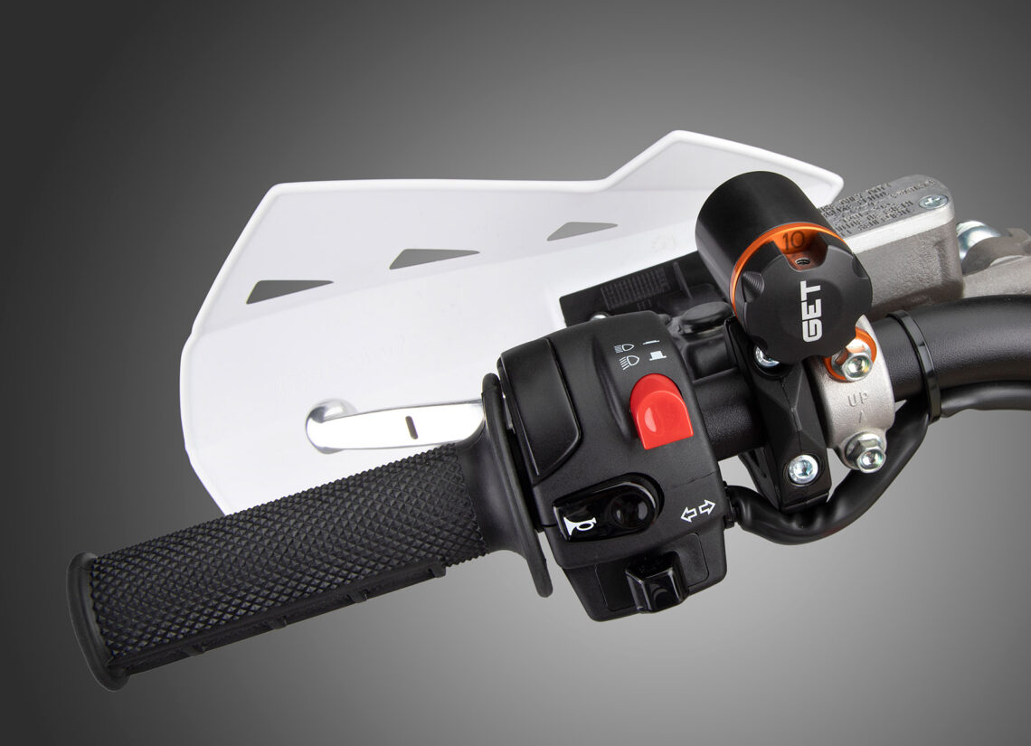 Si nos centramos en la moto, la Bimota BX450 es una moto de enduro que toma como base la Kawasaki KX450X. Su motor es el mismo monocilíndrico de 449 cc 4T y doble árbol de levas, con inyección electrónica y cambio de 5 velocidades. De hecho, no han cambiado ni el emblema de 'Kawa' en la cubierta. El piloto se beneficia también de un buena dosis de electrónica, con diferentes mapas de motor desarrollados en un CDI programable de la marca GET con un aparatoso control en el lado izquierdo del manillar. También contamos con control de salida además de control de tracción. También monta de serie es un escape Arrow diferente al de su hermana con pieza final de fibra de carbono.