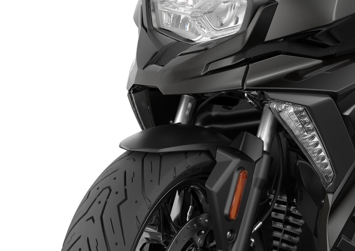El equipamiento de serie también viene enriquecido de serie con Control Dinámico de Tracción (DTC) y Control del Par de Arrastre Motor (MSR). El DTC impide perder tracción en la rueda trasera en fases de aceleración, incluso con el scooter inclinado. Por su parte, el MSR evita momentos de inestabilidad por la propia inercia del vehículo o una reducción brusca del acelerador, lo que puede dar lugar a una derrapada de la rueda trasera. El MSR actúa abriendo las válvulas de mariposa lo suficiente para igualar el par de arrastre y estabilizar así el vehículo.