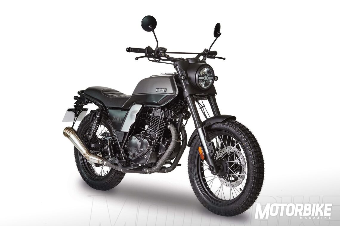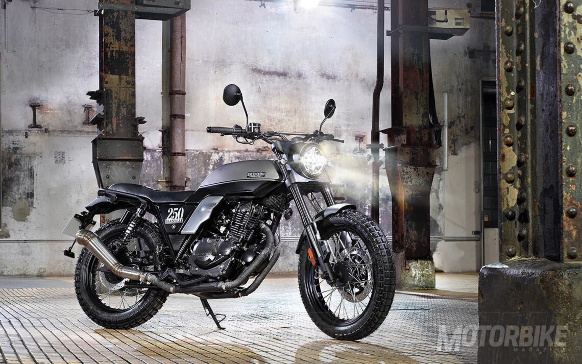 Esta Brixton Glanville 250 X ofrece un plus de prestaciones gracias a su monocilíndrico de 'dos y medio' que empuja hasta 17 cv de potencia, aunque se queda en unos míseros 2,7 litros / 100 km de consumo. Además de su espectacular escape, su gran depósito con formas angulosas con una inserción de madera o el asiento de piel, nos tenemos que fijar en detalles como la horquilla invertida, los amortiguadores regulables traseros, las luces LED delante, detrás e intermitentes integrados en el conjunto.