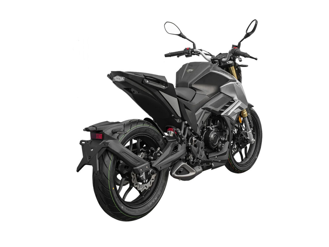 es realmente uno de los puntos más competitivos. Es una propuesta muy sencilla, pero con un motor prometedor y una estética muy moderna y atractiva. Llega con fuerza a un segmento muy competido de naked 125 baratas en el que están propuestas similares como la Keeway RKS 125 (2.190 €), la Leonart Pulse 125 (2.990 €), la Motron Nomad 125 (3.299 €), la Hanway Furious 125 (3.489 €), la Benelli BN 125 (2.590 €), la QJ TRX 125 (2.299 €) y la Honda CB125F (2.980 €), todas ellas también sin ABS (con frenada combinada CBS).
