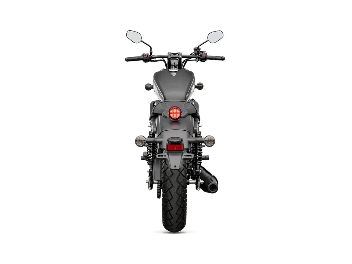 Cuenta con un chasis de tubos de acero con el resto de parte ciclo sencilla, con suspensiones convencionales formadas por una horquilla convencional de 37 mm y 135 mm de recorrido y un doble amortiguador regulable en precarga con un recorrido de 62 mm. La frenada está encargada a un disco delantero de 300 mm y otro trasero de 240 mm, en ambos casos asistidos por ABS. Su aspecto gana personalidad también por la elección de medidas de neumáticos, con 18" delante y 15" detrás. Además, las llantas de radios ahondan en ese carácter vintage aunque los neumáticos son tubeless. El depósito tiene 15 litros de capacidad mientras que su peso se queda en 153 kg.