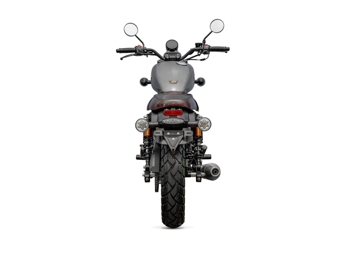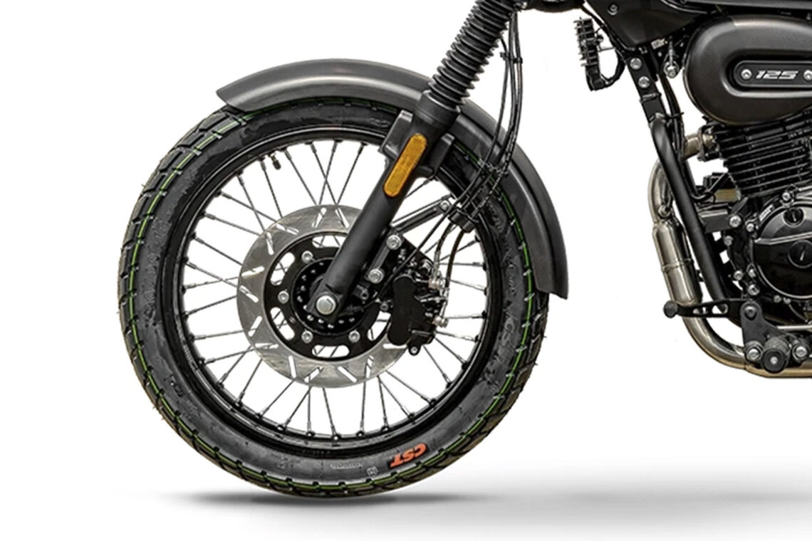 Su carácter clásico también lo vemos en las ruedas, de 18" delante y 15", con llantas de radios y neumáticos rayados. El depósito alberga 13 litros de capacidad y pesa 144 kg.