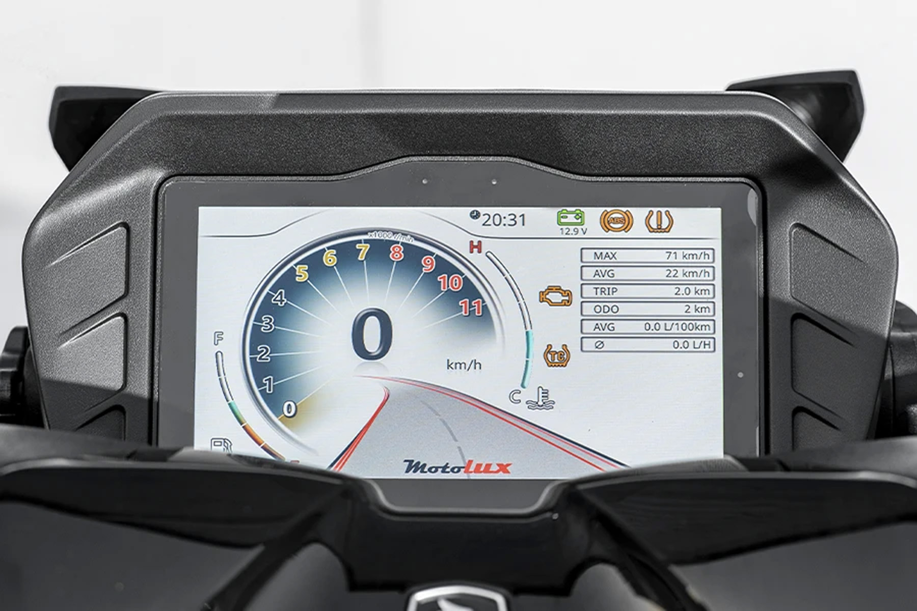 El grado de sofisticación del Cyclone RT2 sorprende. Además del mecionado antibloqueo de frenos obligatorio, tiene control de tracción y llave sin contacto. La pantalla TFT incluye conectividad con mirror-link (reflejo de la pantalla de tu móvil en la pantalla del scooter). Tiene también una cámara frontal, los mandos retroiluminados y luces full-LED.