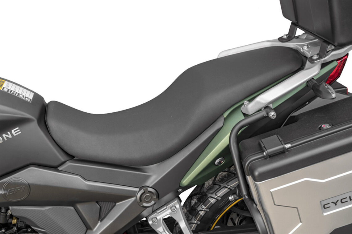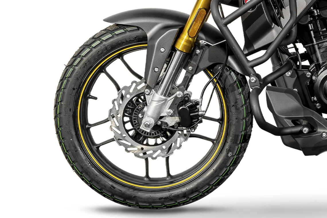Otros detalles de esta moto del grupo Zonsen que se mantienen de serie son las defensas laterales o los neumáticos tubeless montados sobre llantas de aleación.