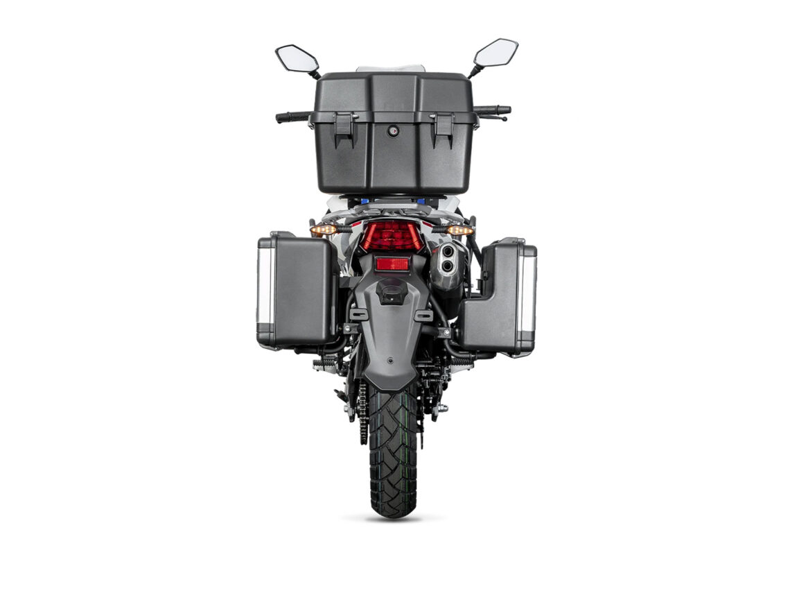 En este modelo, trae de serie el kit de maletas laterales y baúl aumentando sus competencias viajeras.