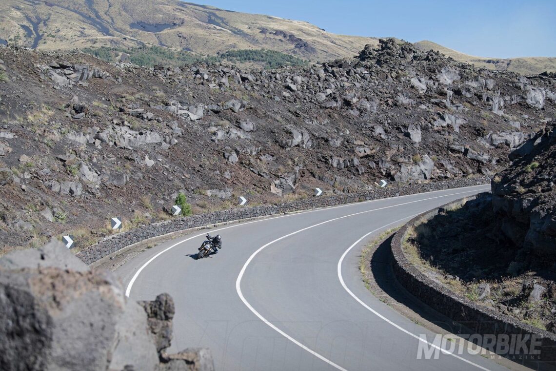 Freno delantero - 2 x Ø 320 mm semiflotantes, Pinzas anclaje radial Brembo monobloc 4-piston M50, PR16/19 bomba radial, Bosch Cornering ABS Evo