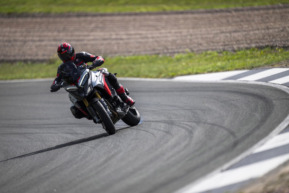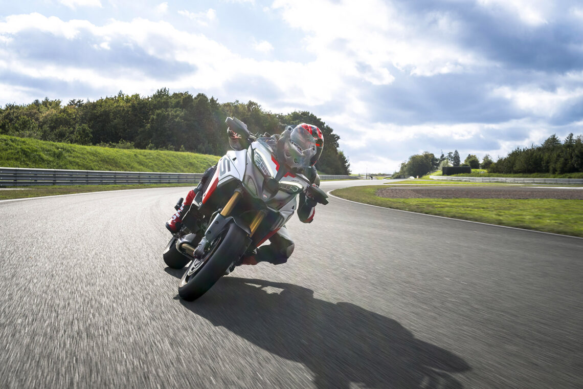 En cuanto a las suspensiones, volvemos a ver la combinación de Öhlins Smart EC 2.0 electrónicas (170 mm de recorrido en ambos ejes), que se autorregulan en función de cada estilo de conducción personal. Ahora se ha recalibrado para obtener el mejor equilibrio entre confort y apoyo en conducción deportiva. Según el modo de conducción (Touring, Sport, Race y Urban), tienen un comportamiento dinámico diferente. Además, se ha aumentado el freno hidráulico cuando el piloto selecciona los niveles de amortiguación más altos en los distintos Riding Modes, para los diferentes modos de carga con equipaje y pasajero.
