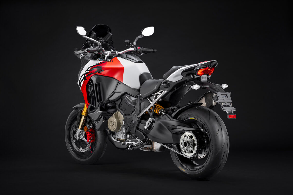 Si seguimos por el apartado electrónico de la Ducati Multistrada V4 RS, el sofisticado paquete electrónico viene completado con tecnología de radar delante y detrás que le permiten disfrutar de control de crucero adaptativo Adaptive Cruise Control (ACC) y detector de punto ciego Blind Spot Detection (BSD). Además, la plataforma inercial IMU de Bosch permite elegir 4 modos de motor (Full, High, Medium y Low de 114 cv), control de tracción Ducati Traction Control (DTC), control de wheelies Ducati Wheelie Control (DWC), freno motor Engine Brake Control (EBC) en tres niveles y cambio rápido Ducati Quick Shift (DQS) Up&Down. Todo ello calibrado para el uso de este modelo e integrados en cuatro modos de conducción.