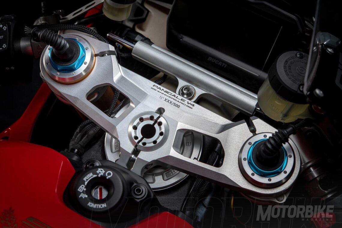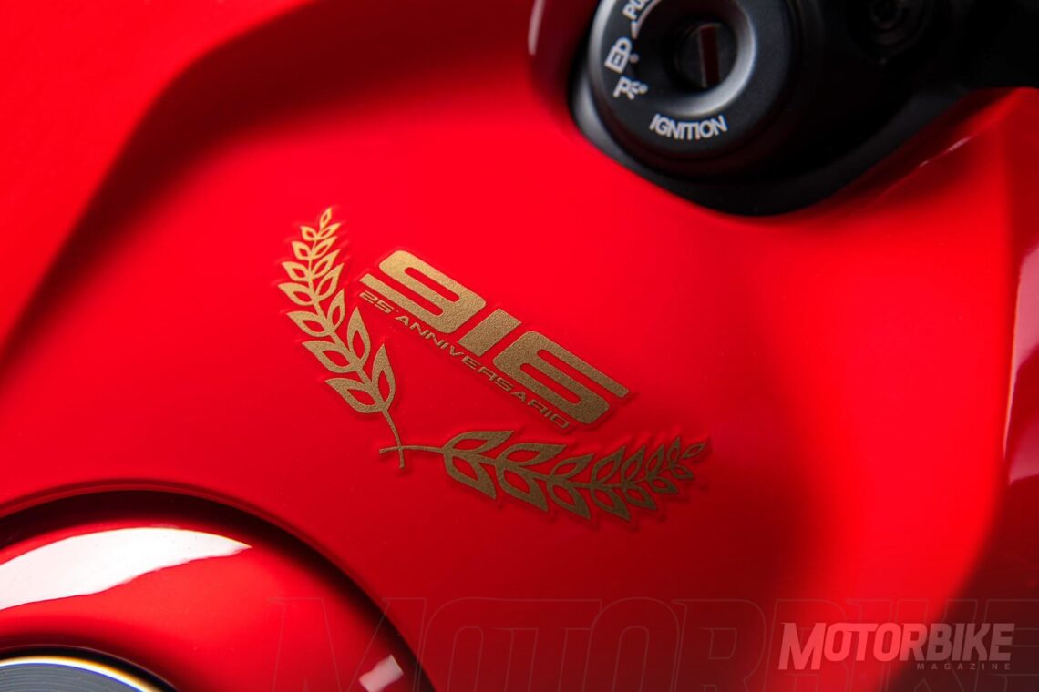 Para esta efeméride, llega una versión especial Ducati Panigale V4 25 Anniversario 916. Es una edición limitada a sólo 500 unidades numeradas. Se basa en la Ducati Panigale V4 S, pero añade mejoras aplicadas en la Ducati Panigale V4 R como el Front Frame, diseñado con especificaciones del departamento Ducati Corse.